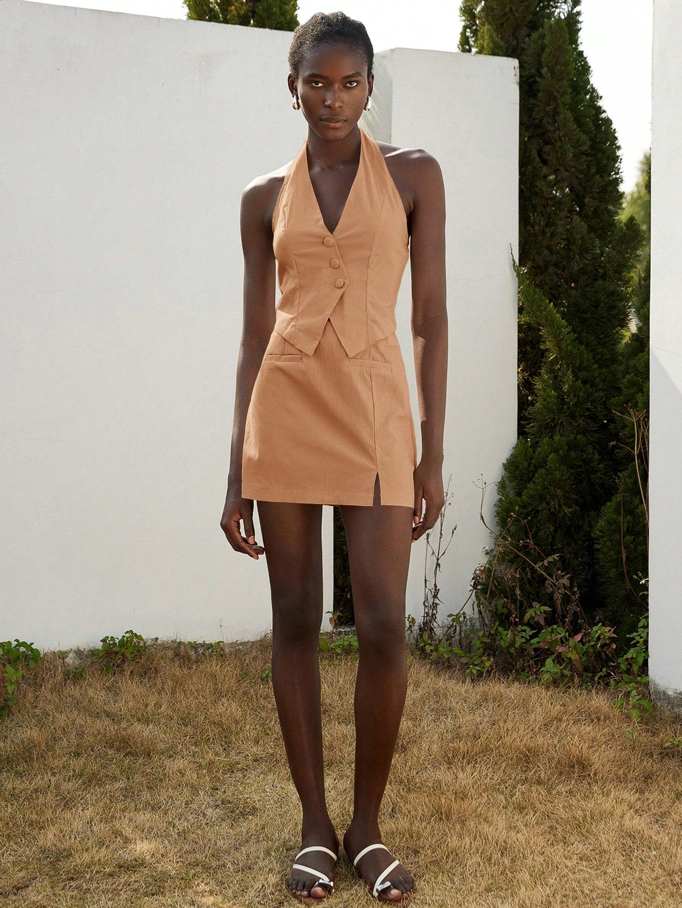 Aveloria Modichic 2pcs Women Set: Casual Lapel Front Opening Vest And Fitted Pencil Skirt