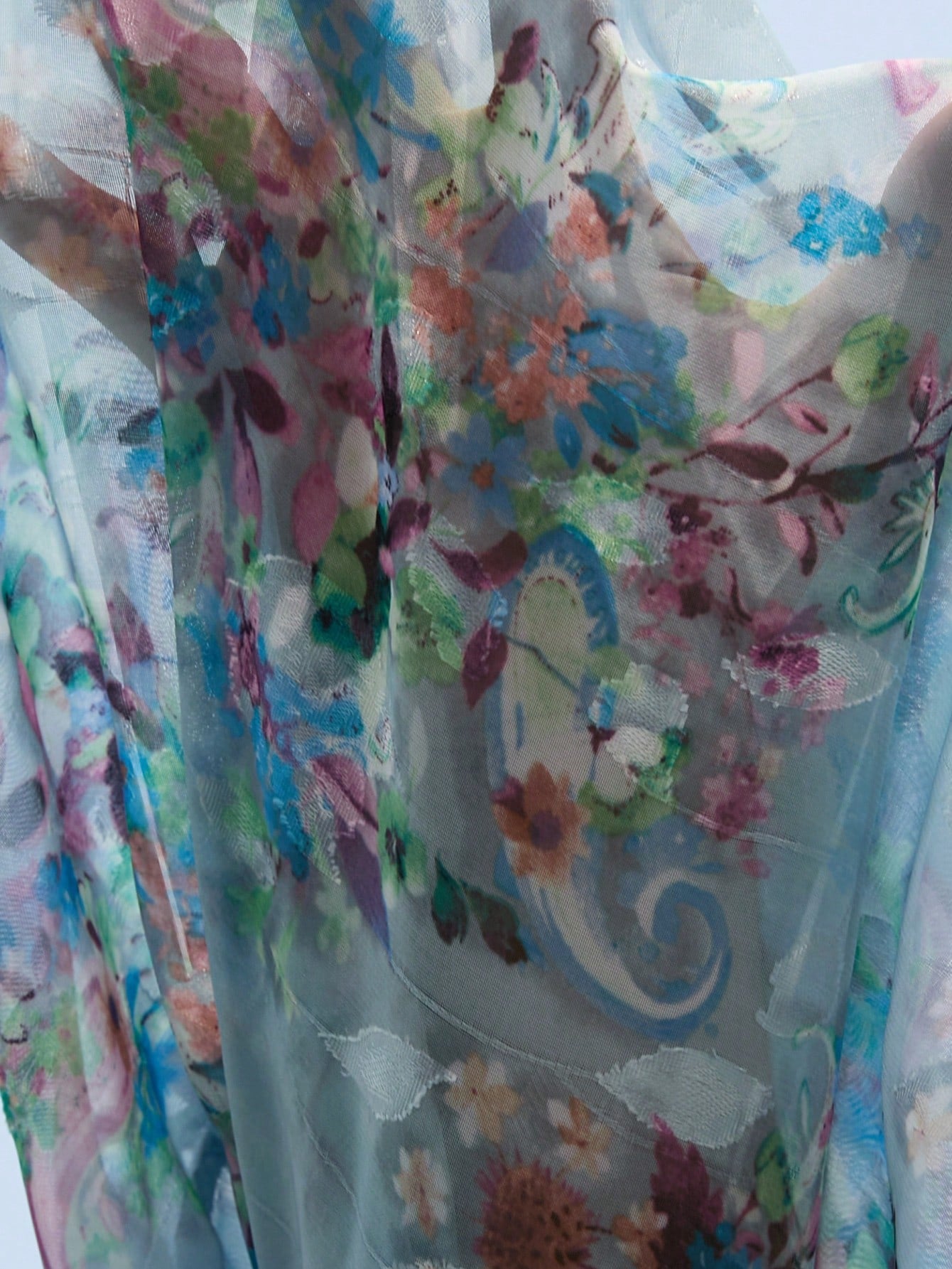 women Aveloria Modichic French Romantic Floral 3D Print Lapel Collar Sheer Long Sleeve Shirt For Women