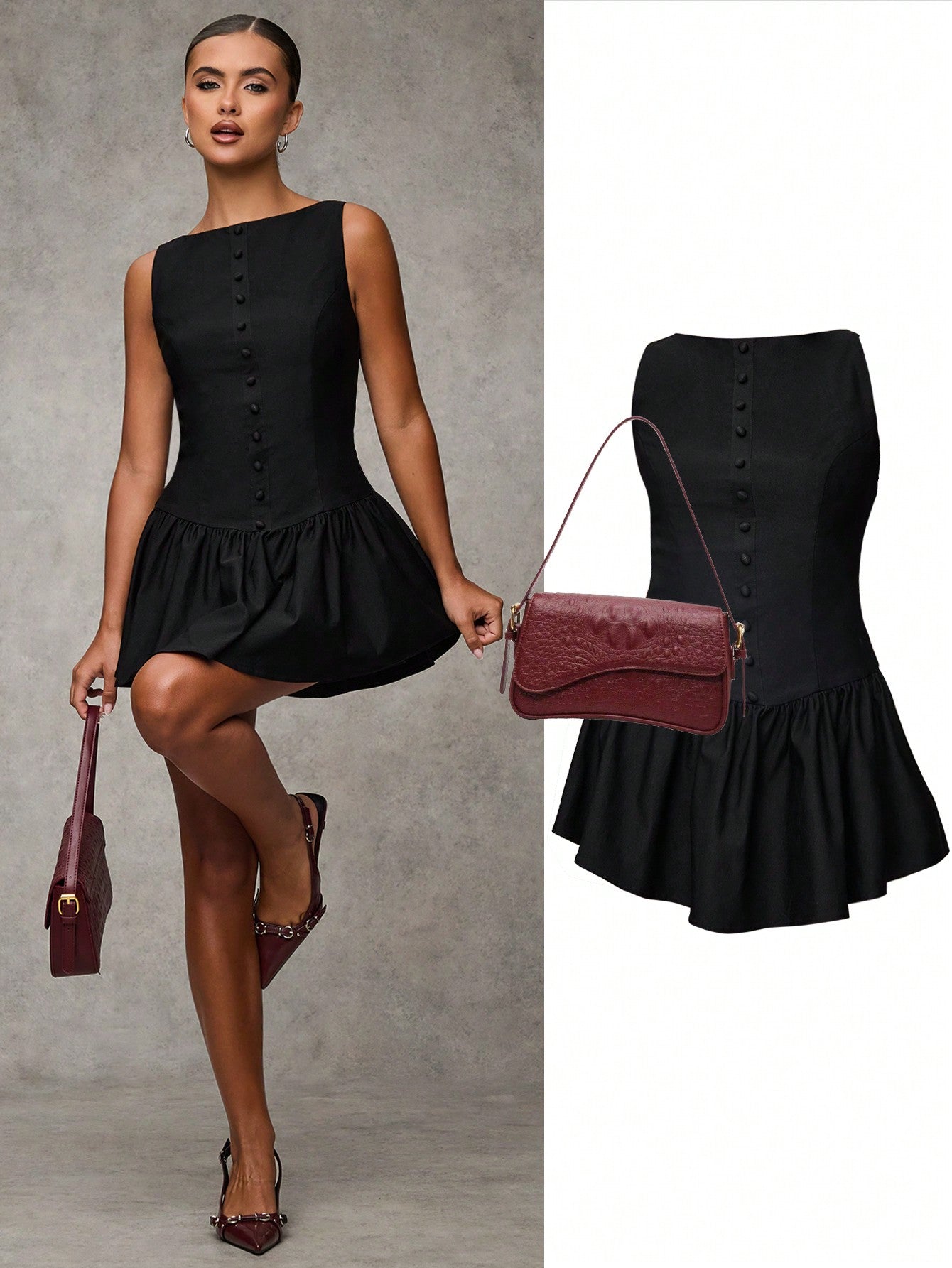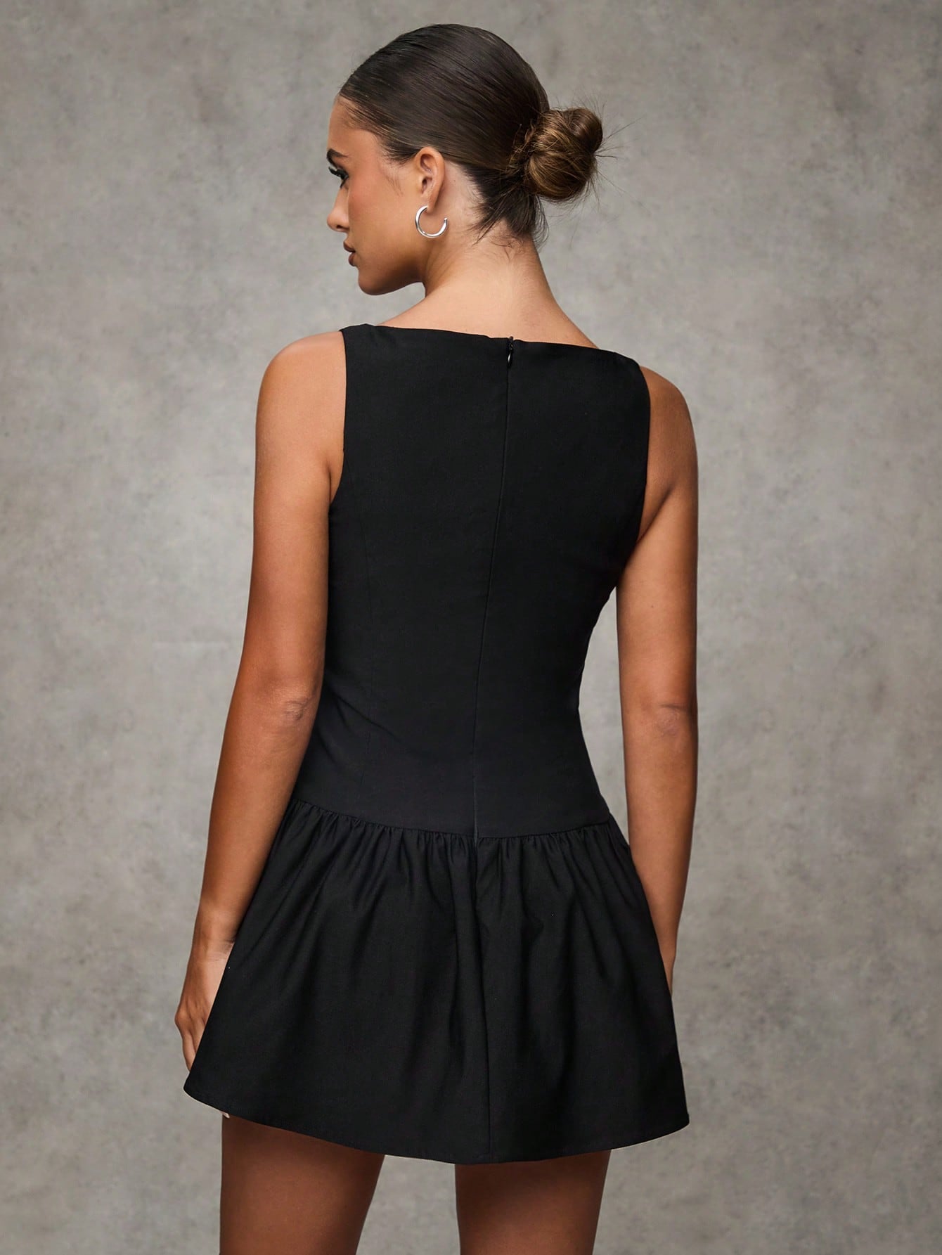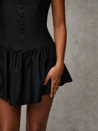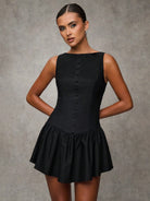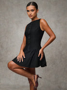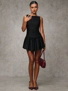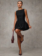 BAE Women's Solid Color Ruffle Hem Round Neck Sleeveless Elegant Mini Dress, Black Homecoming Dress,Homecoming
