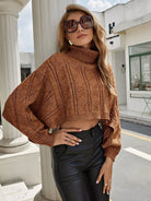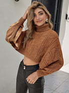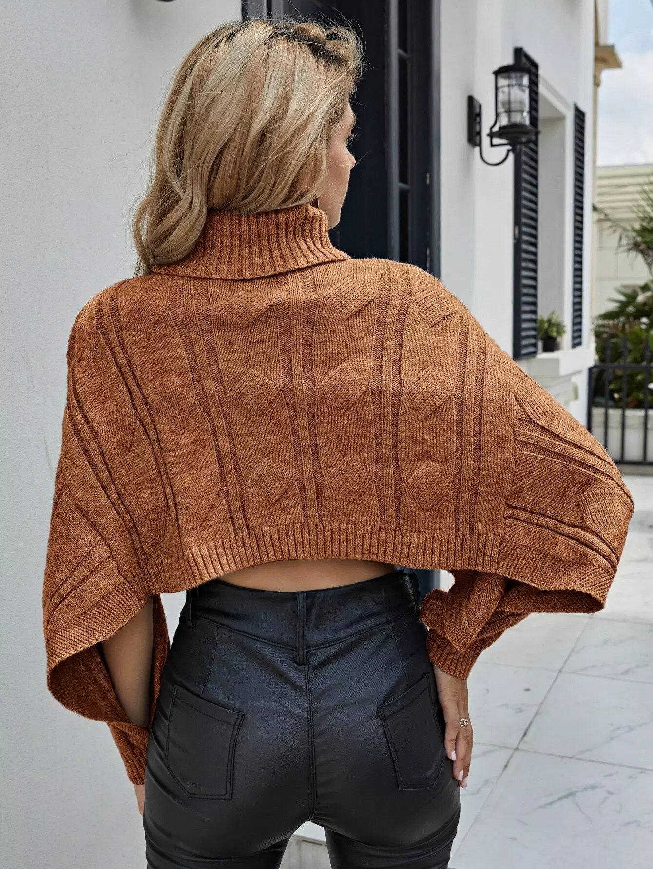 Women - Batwing Sleeve Turtleneck Crop Sweater