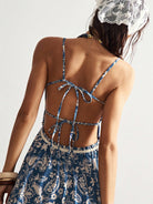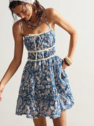 Bohemela Summer Boho Blue & White Floral Casual Vacation Woven Print Open Back Mini Dress For Women