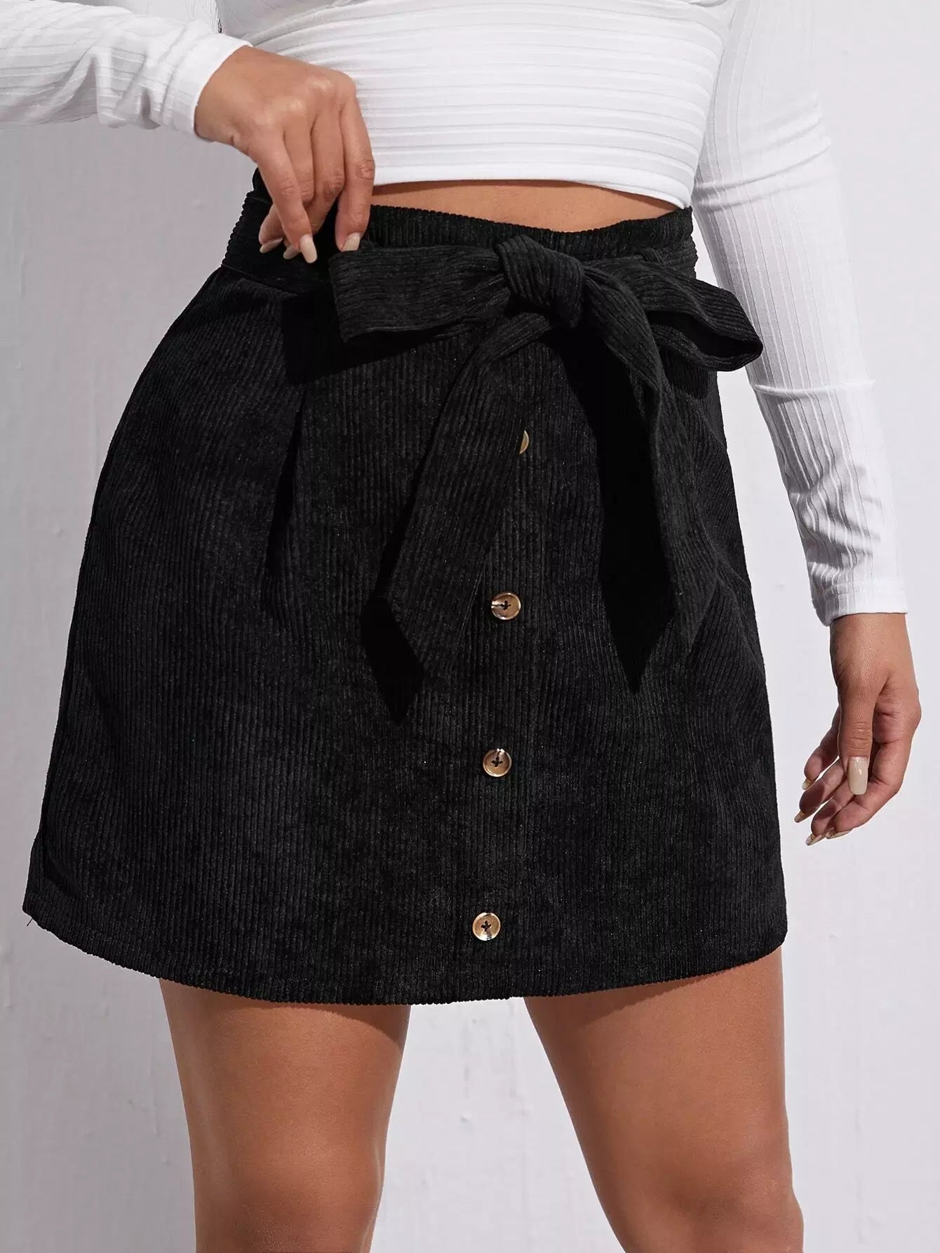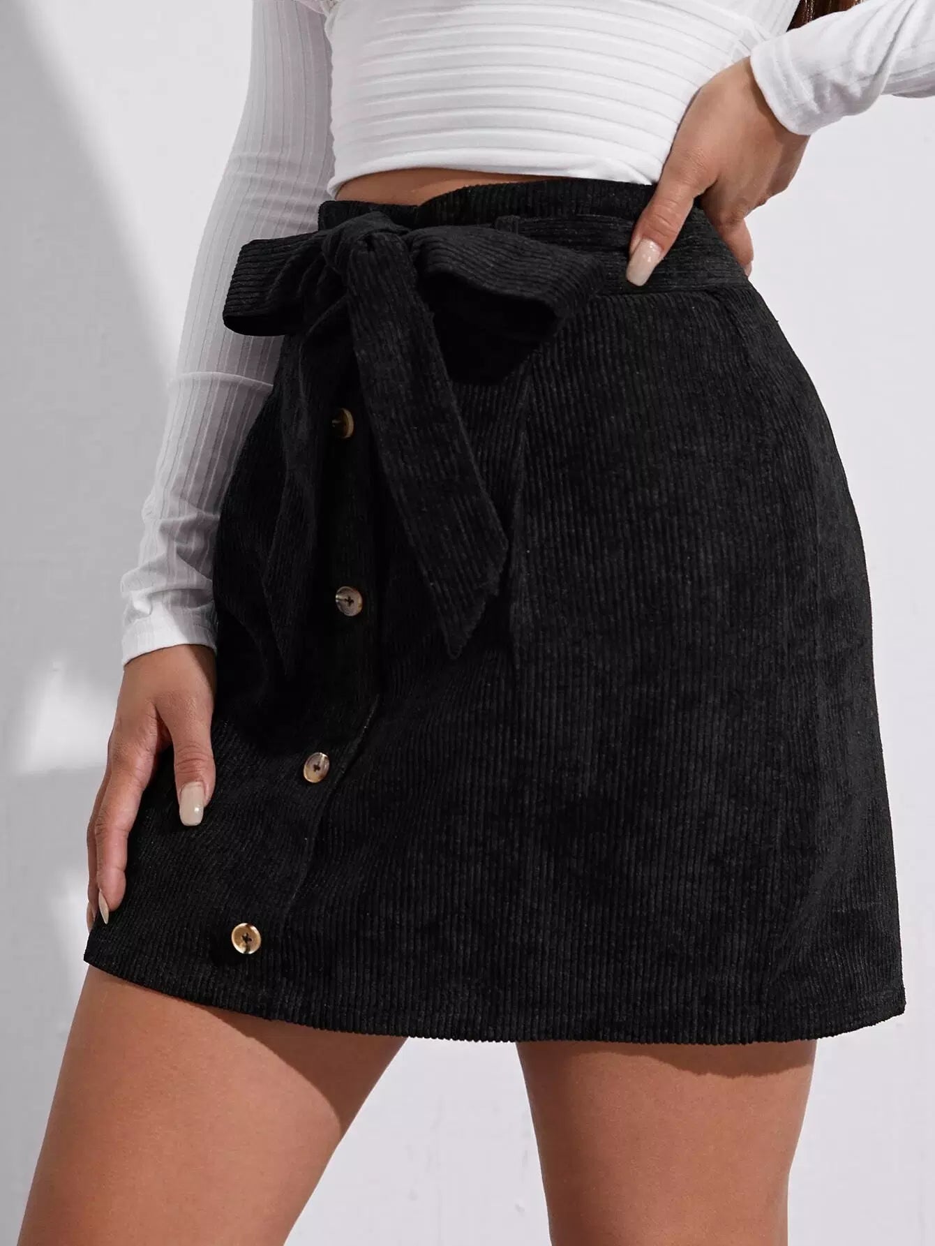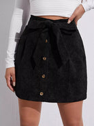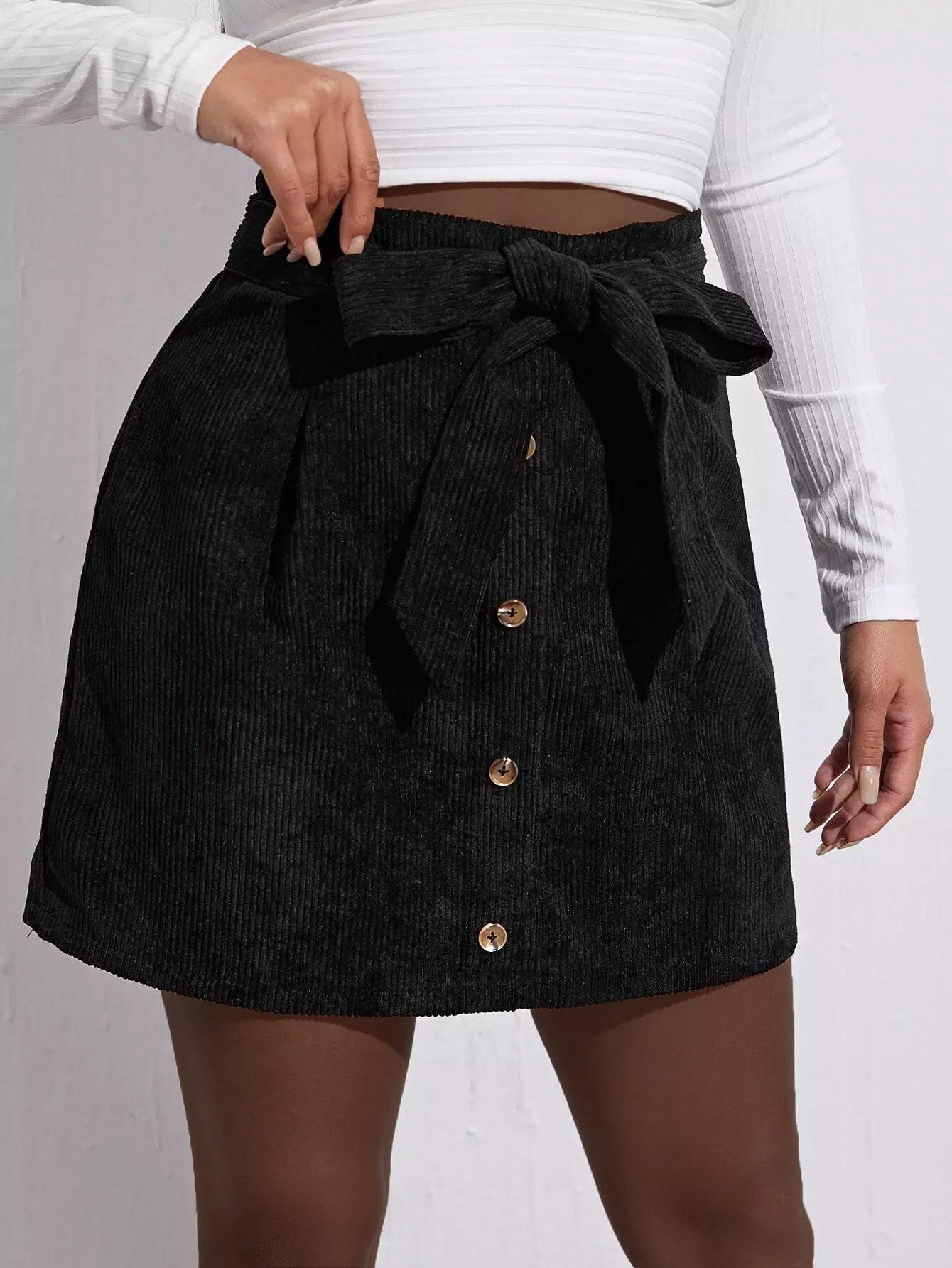 Button Front Self Cord Skirt Without Belt