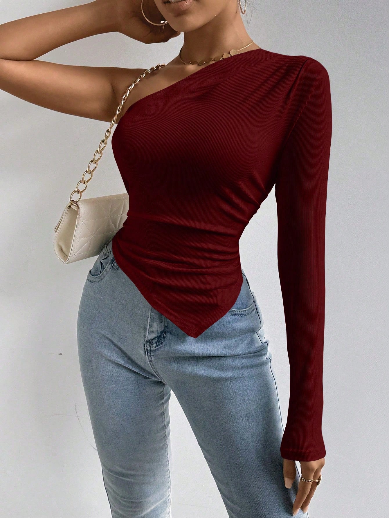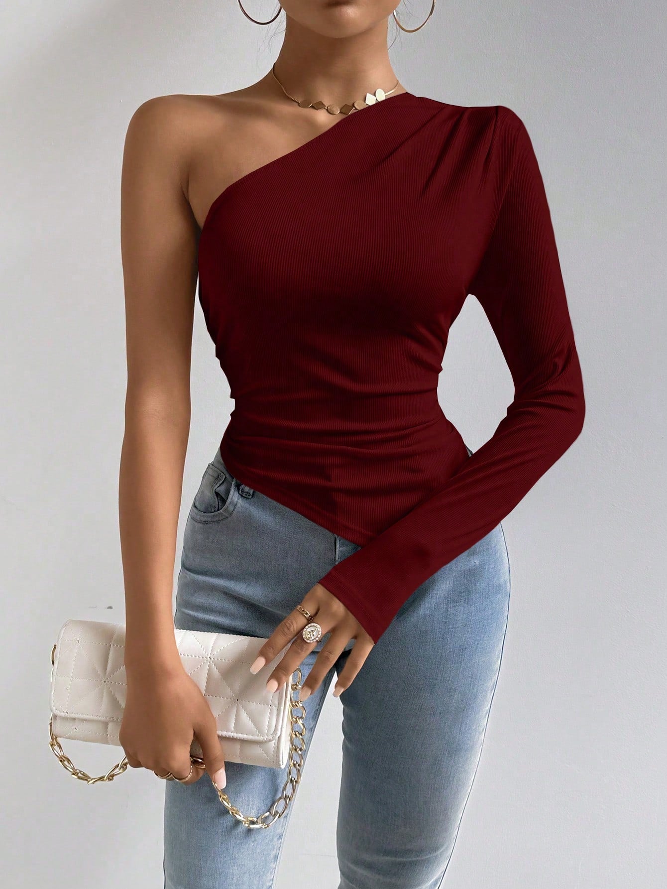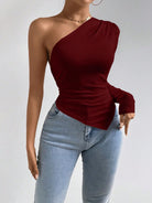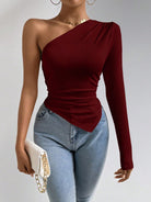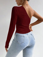 Chiquease Women's Solid Color Oblique Shoulder Long Sleeve Casual Top