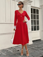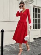 Chiquease Women's V-Neck Long Sleeve Floral Lace Patchwork A-Line Elegant Dress