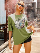 Clock & Butterfly Graphic Drop Shoulder Oversized Tee