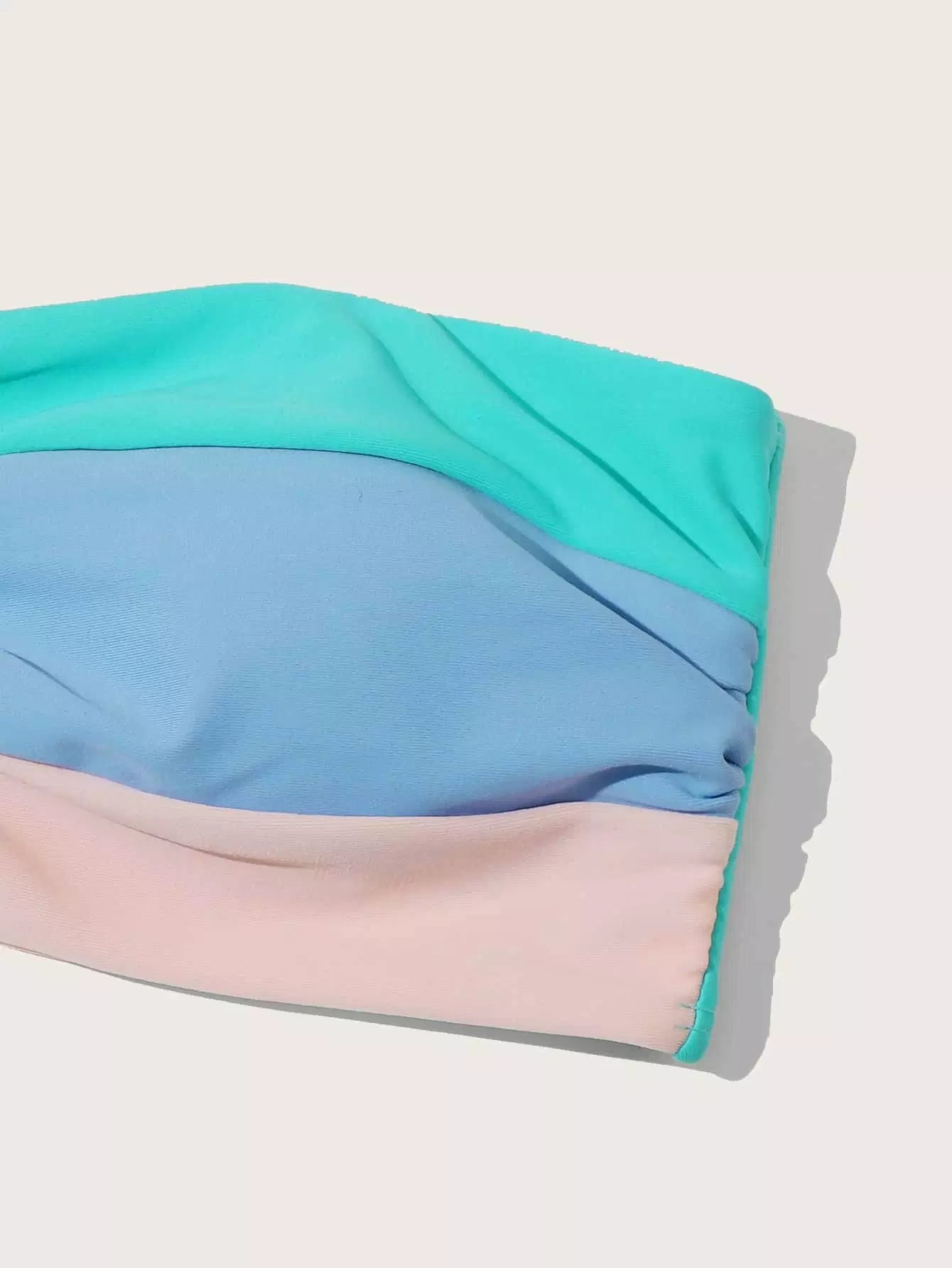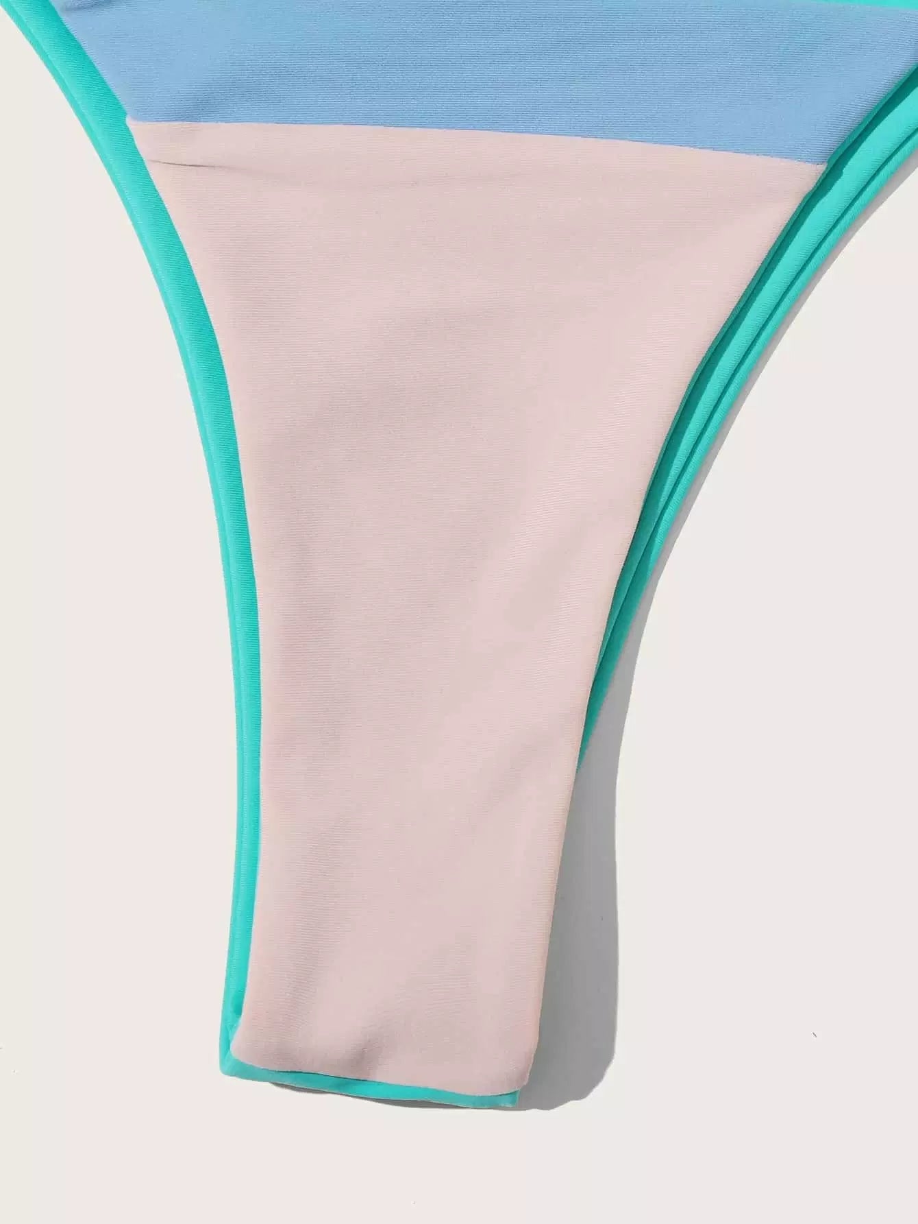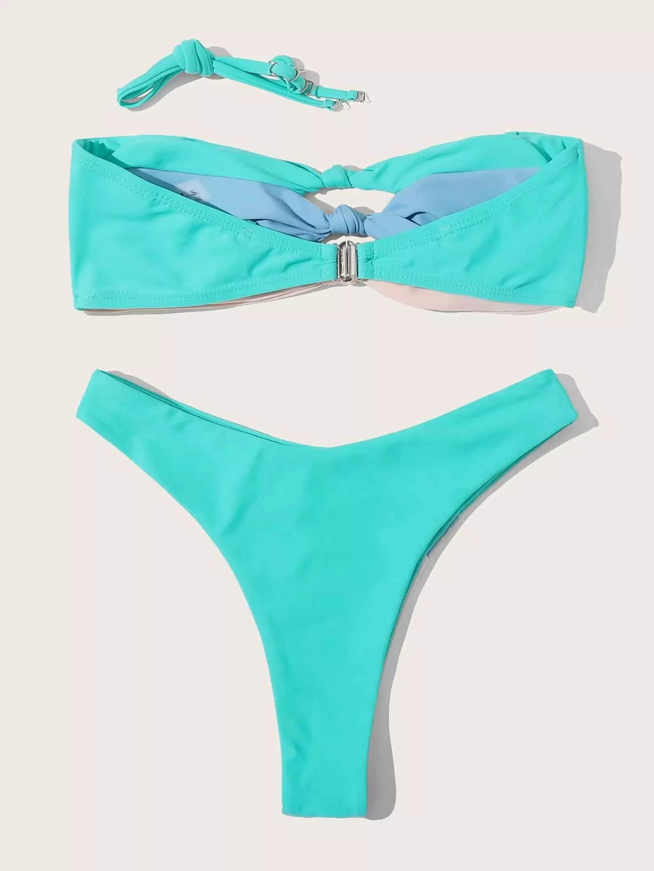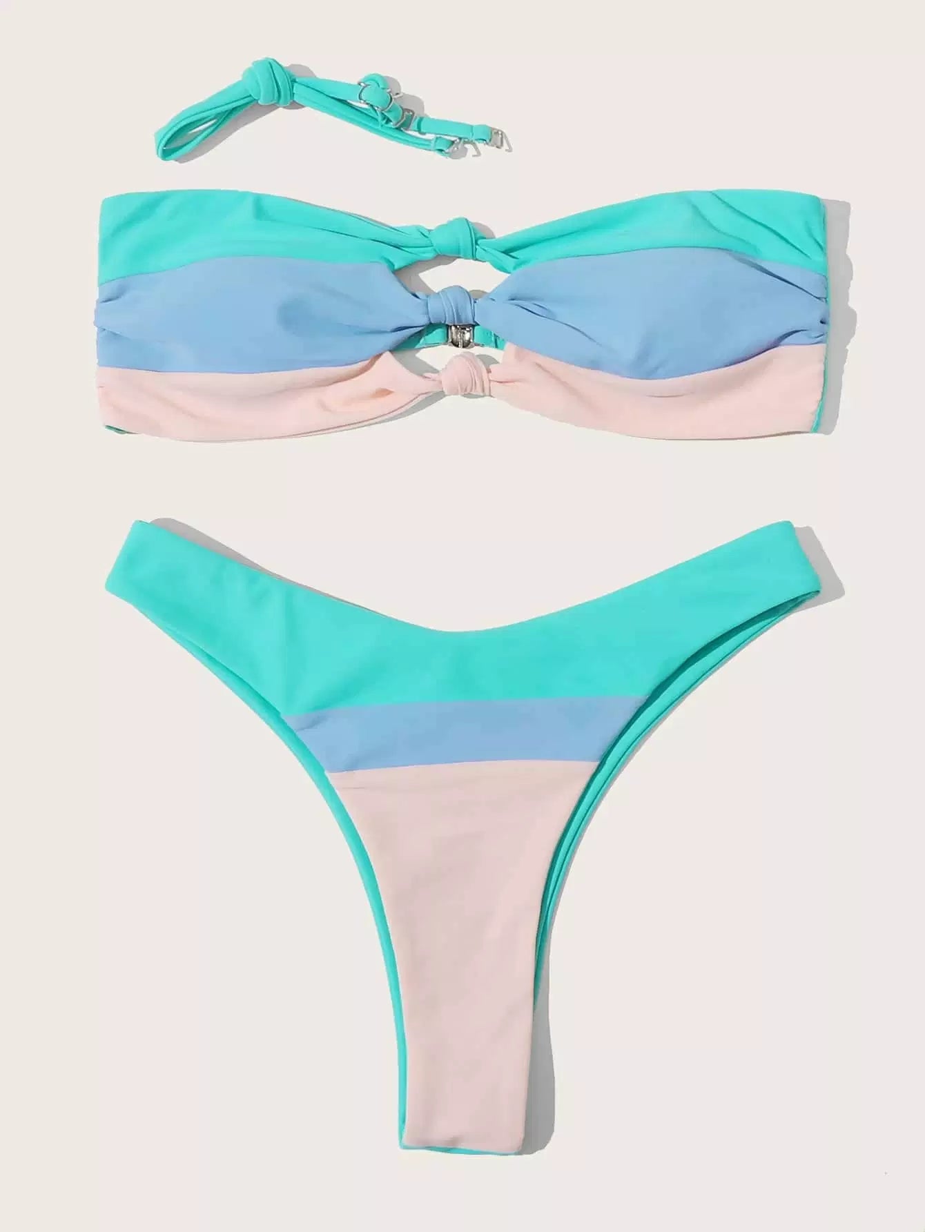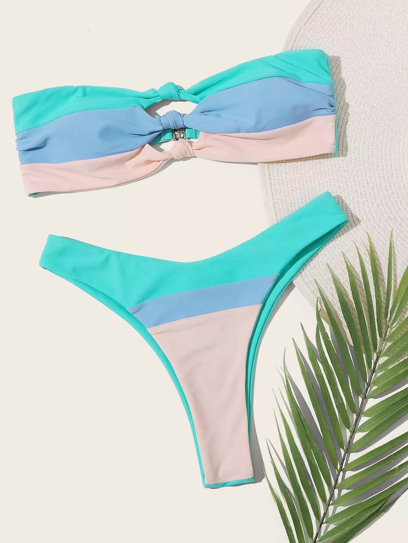 Women - Color Block Knot Bandeau High Cut Bikini Swimsuit