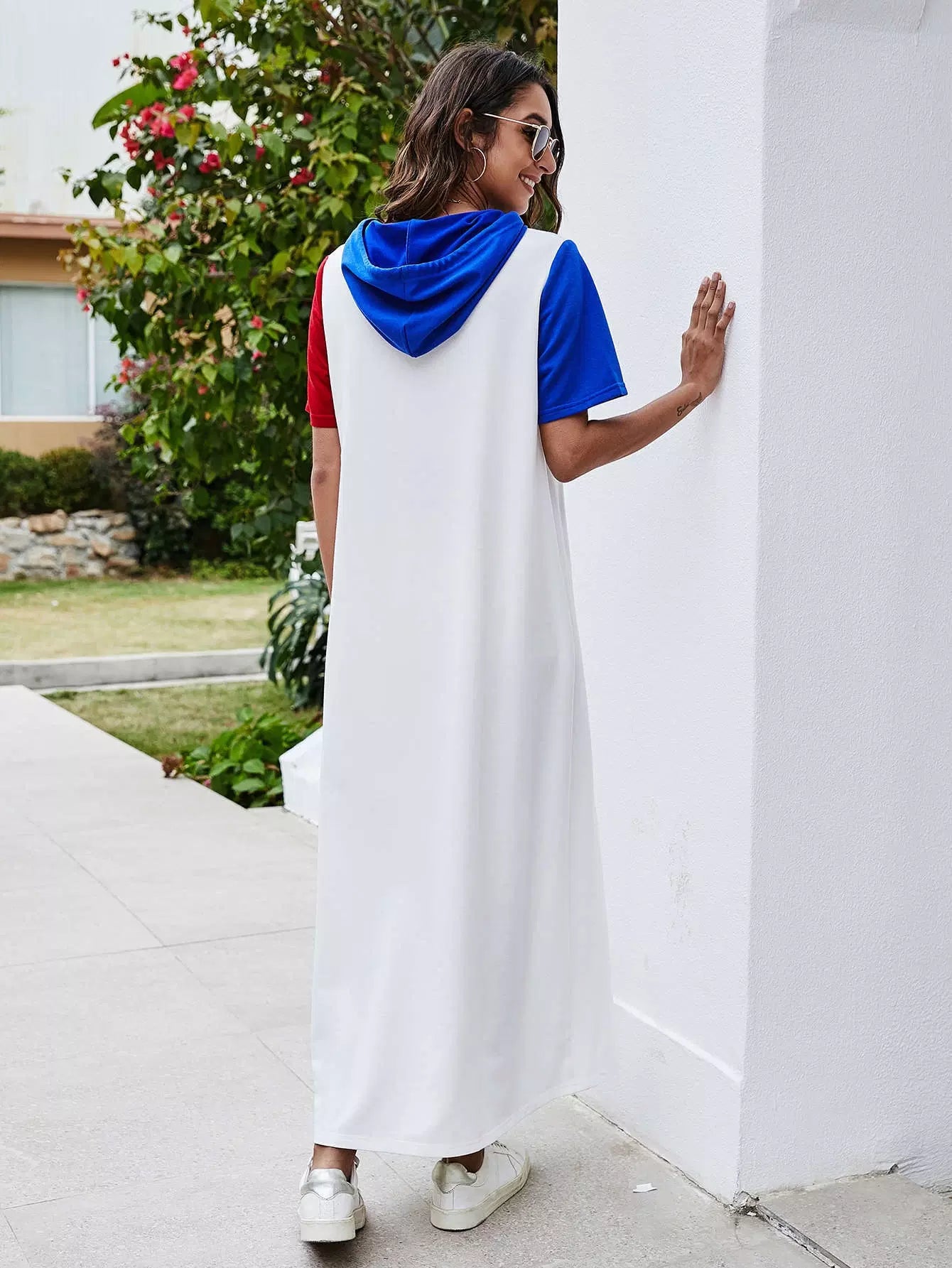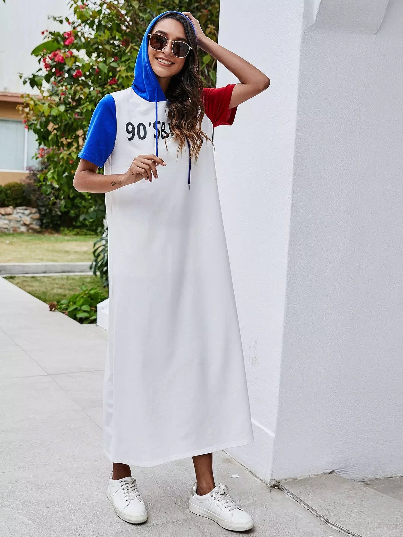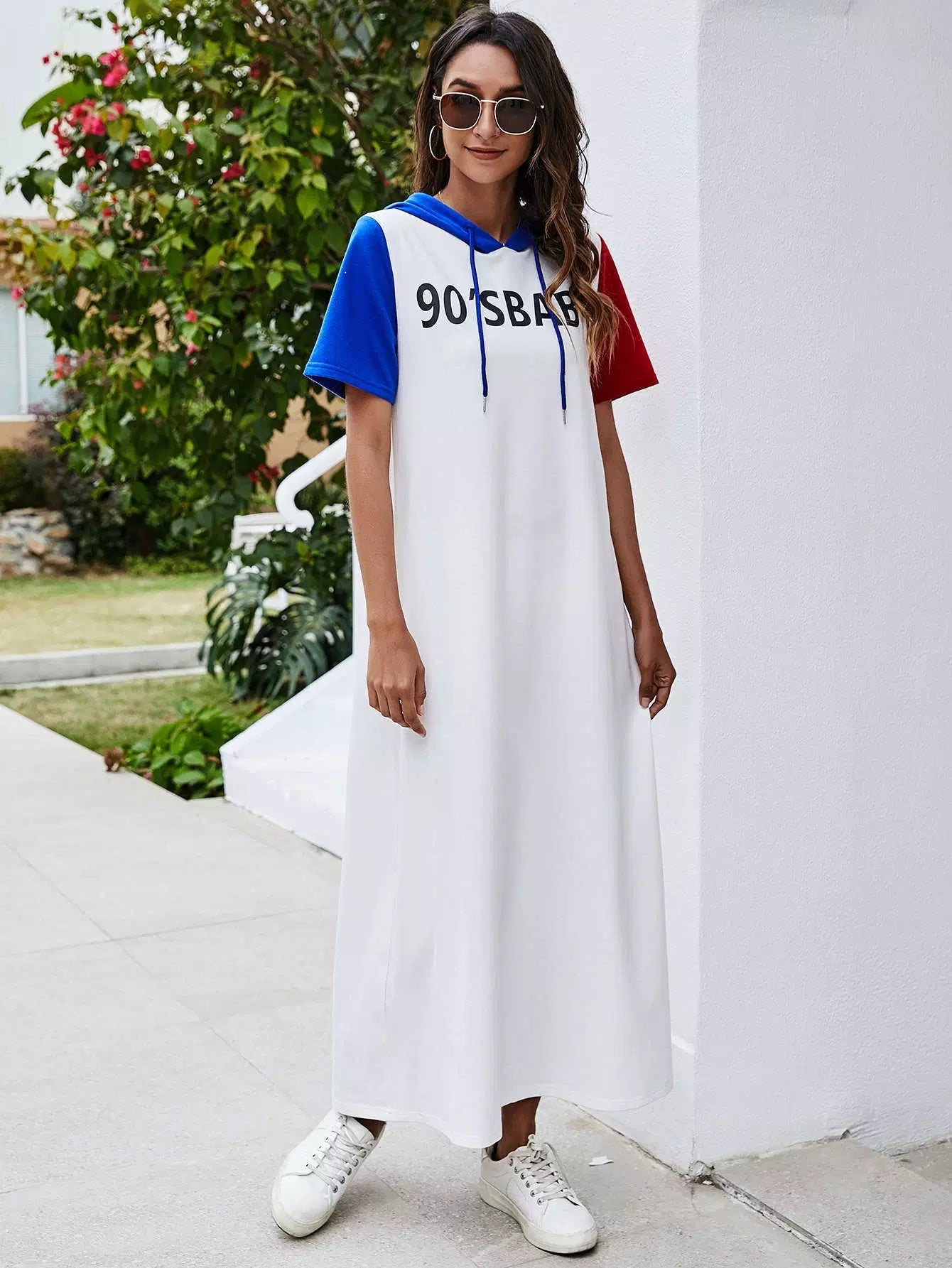 Color Block Letter Graphic Hoodie Dress