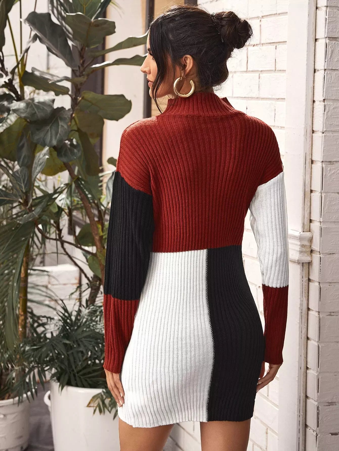 Women - Color Block Rib-knit Sweater Dress Without Belt