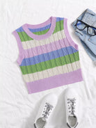 Women - Colorblock Cable Knit Top