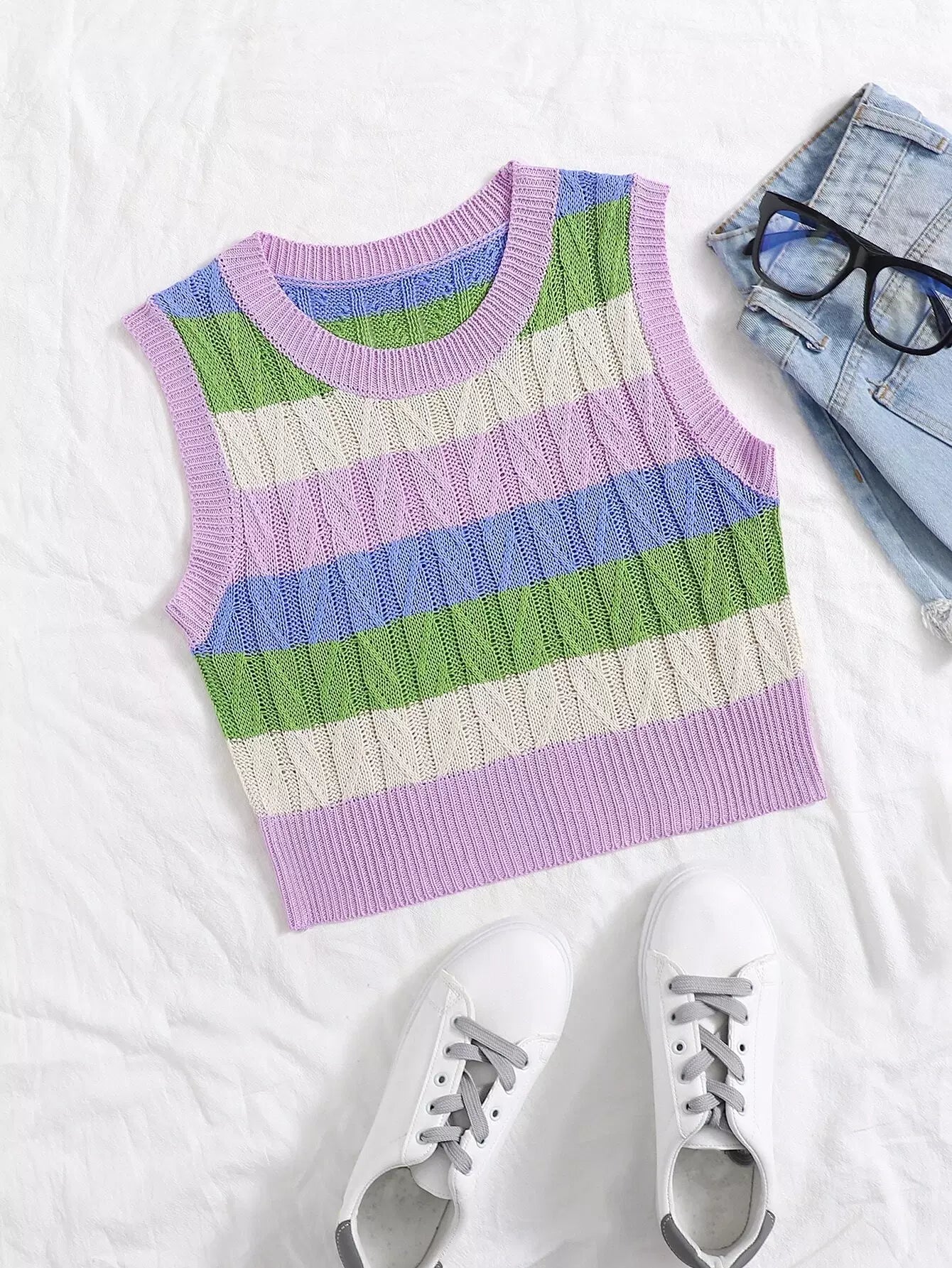 Colorblock Cable Knit Top