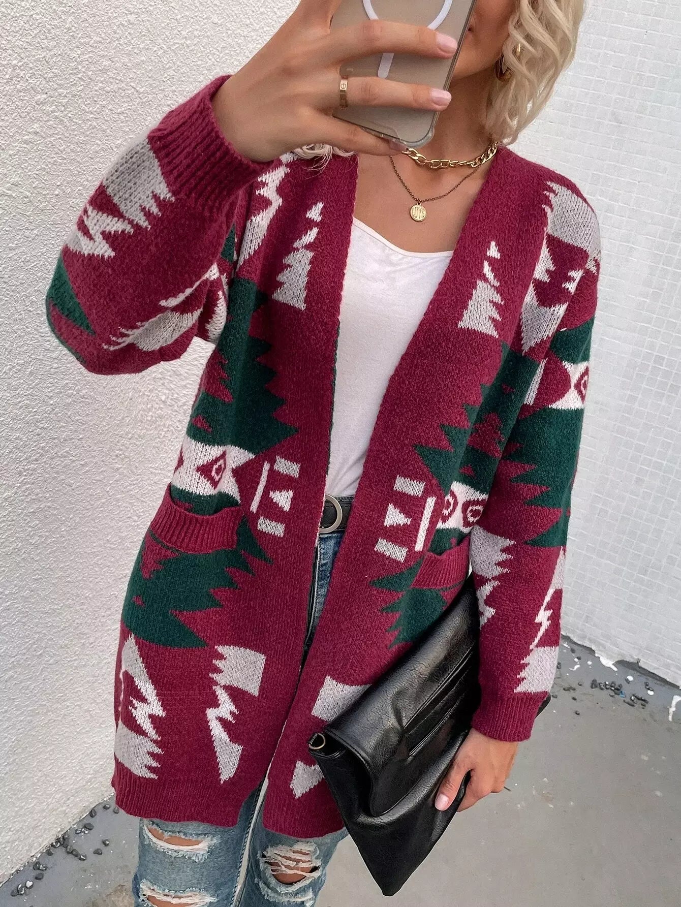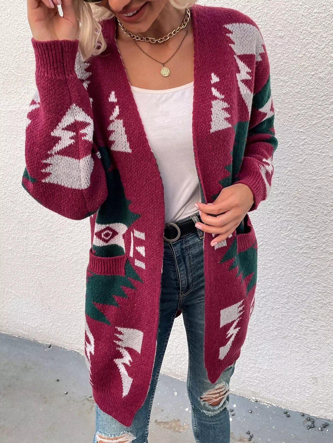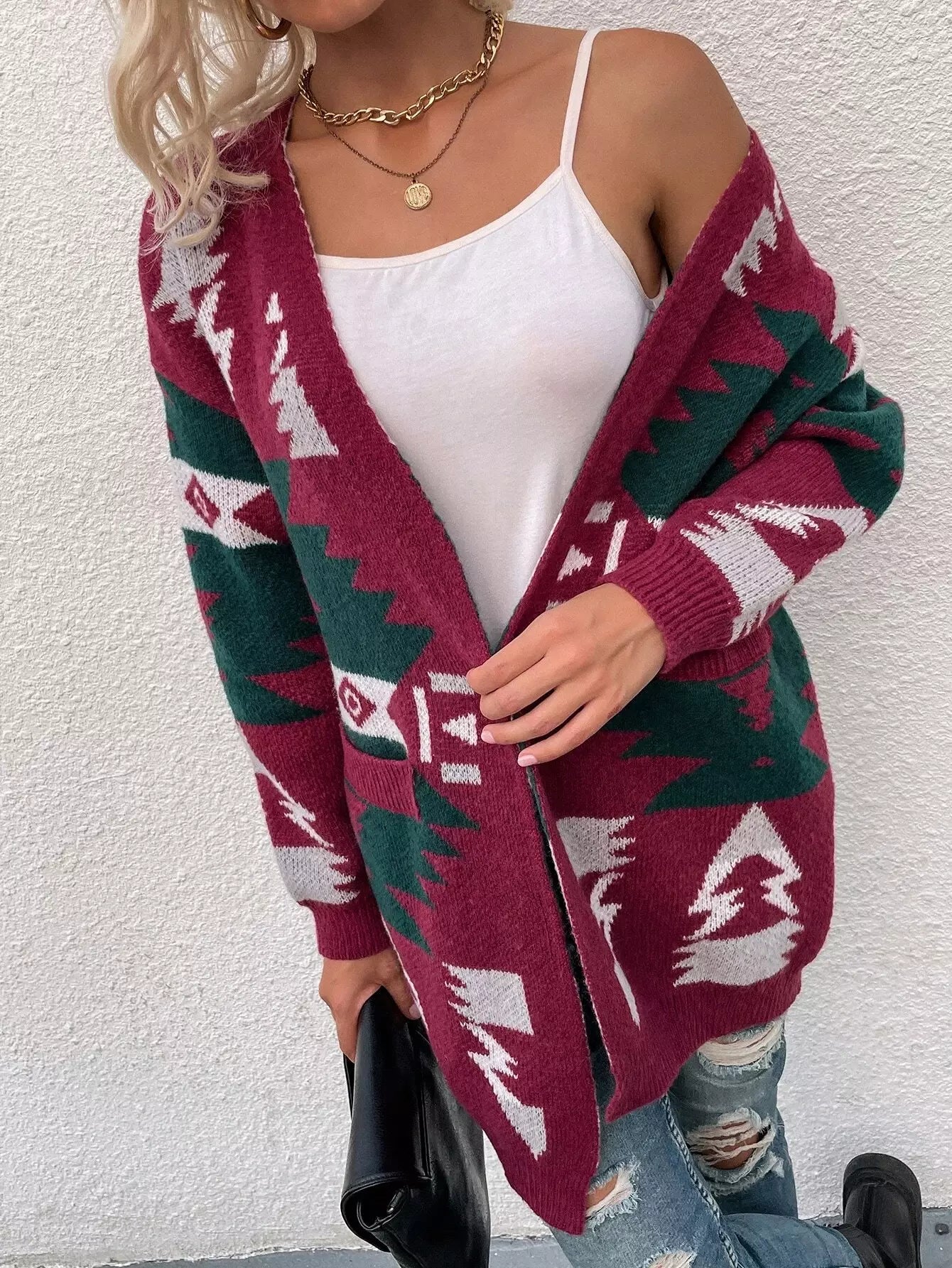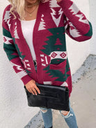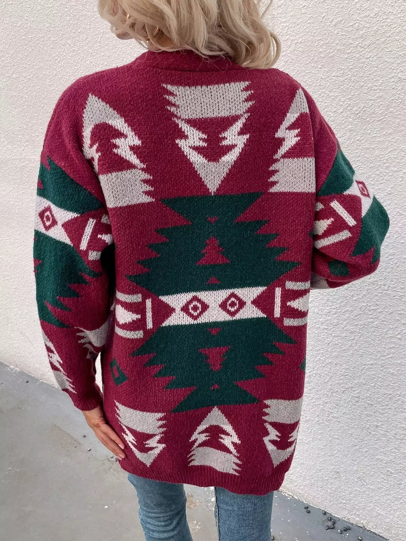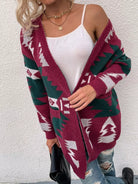 Colorblock Geometric Pattern Drop Shoulder Cardigan