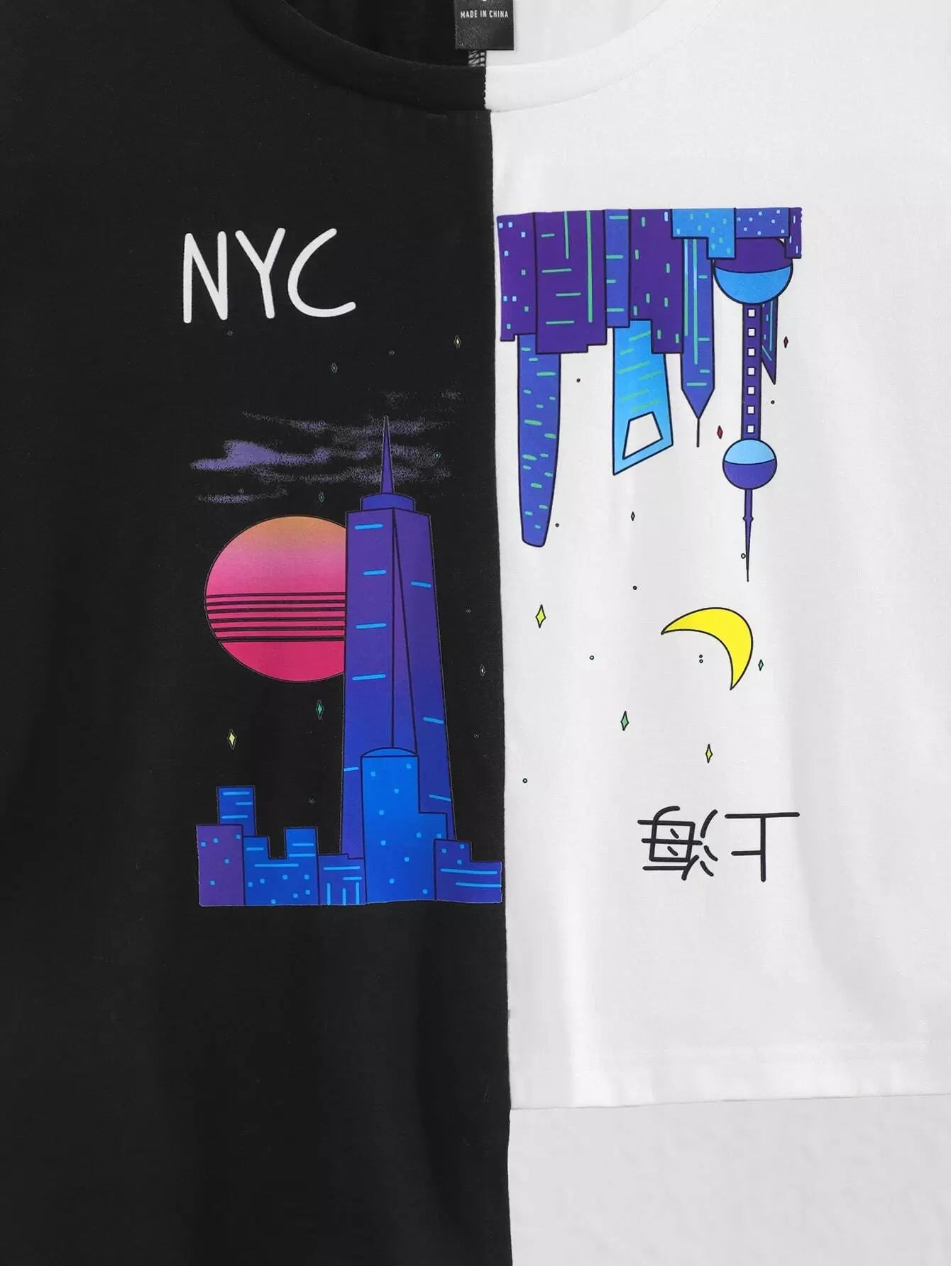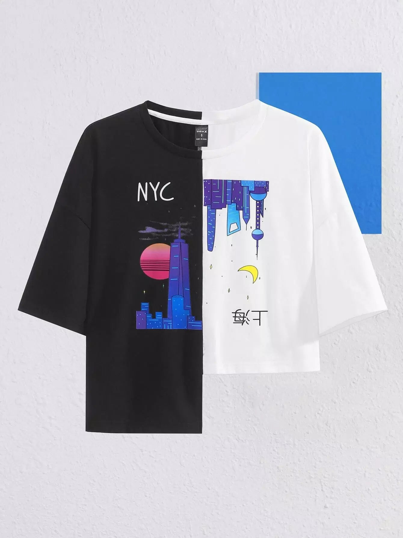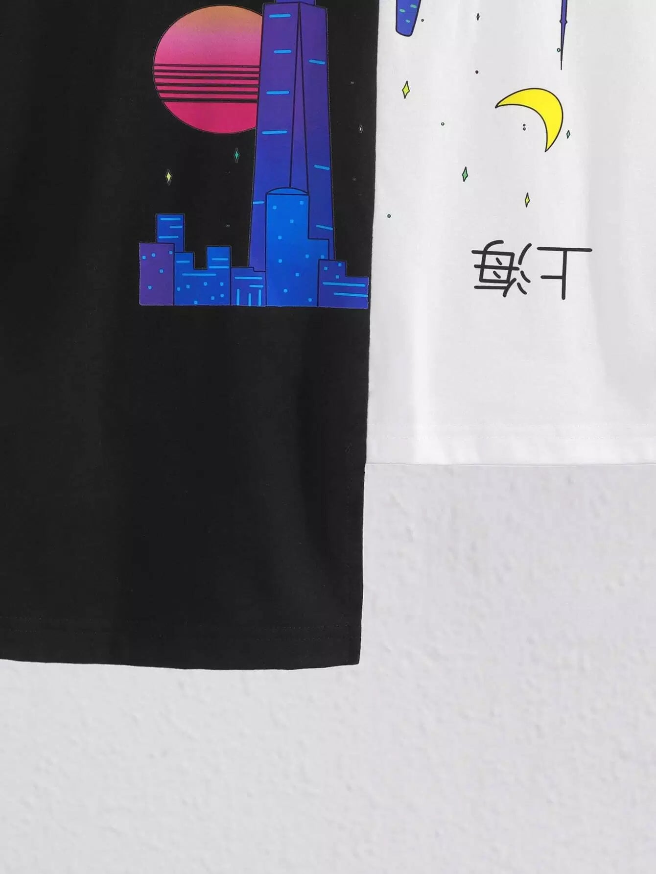 Colorblock Graphic Print Irregular Hem Top