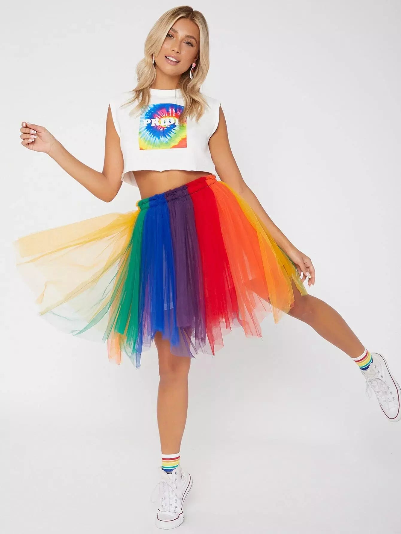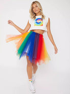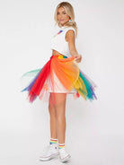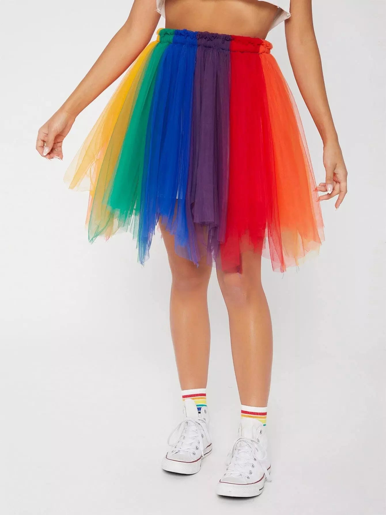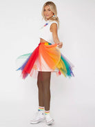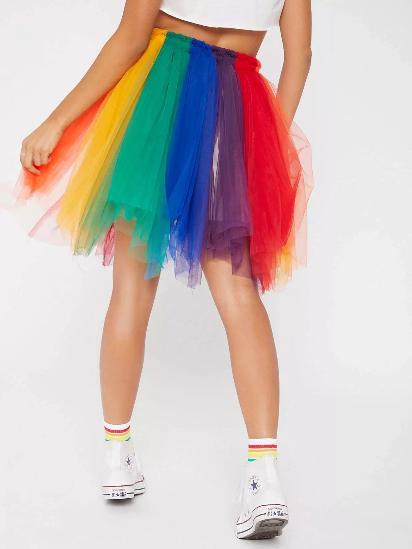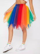 Colorblock Mesh Flare Skirt