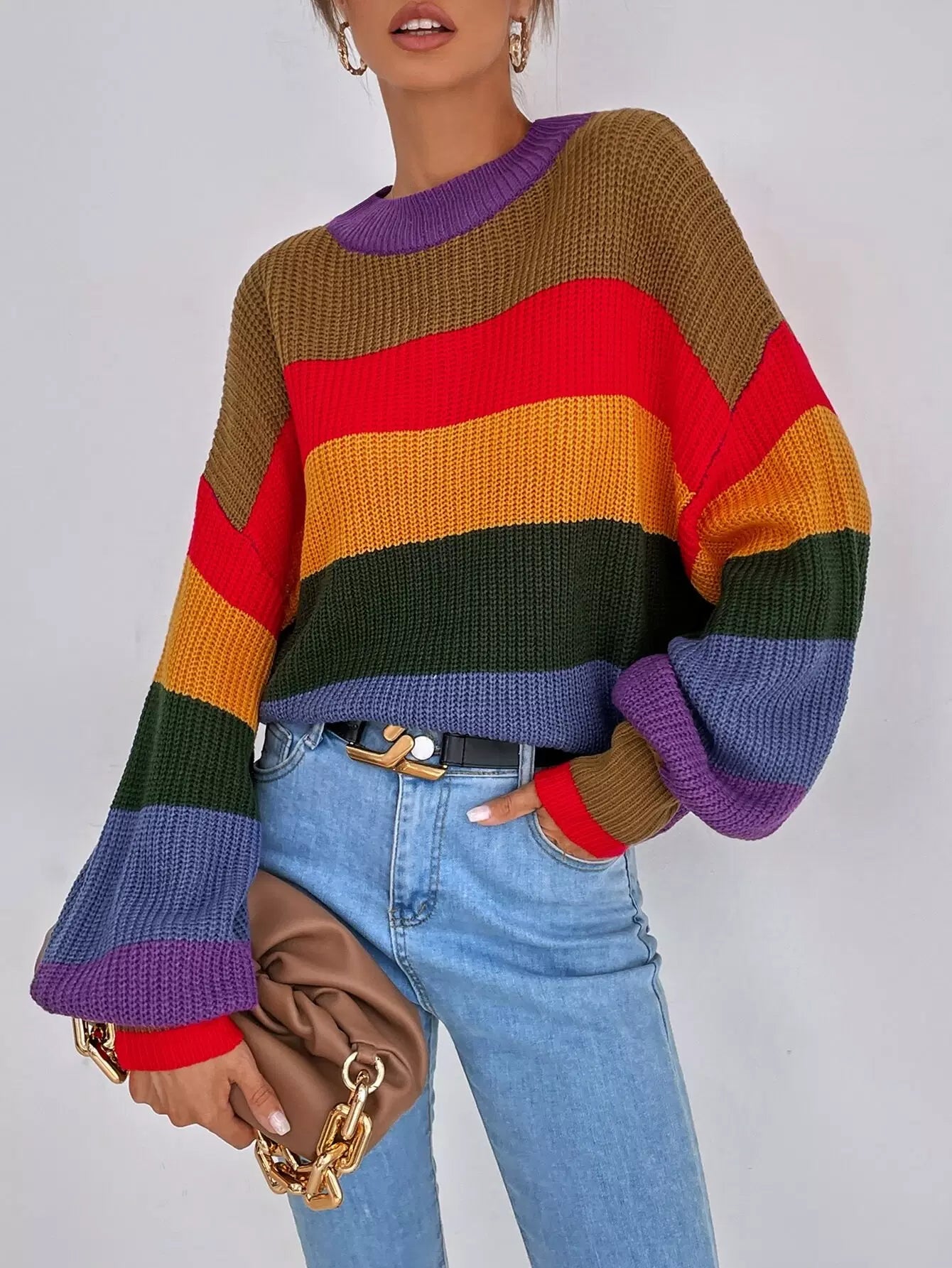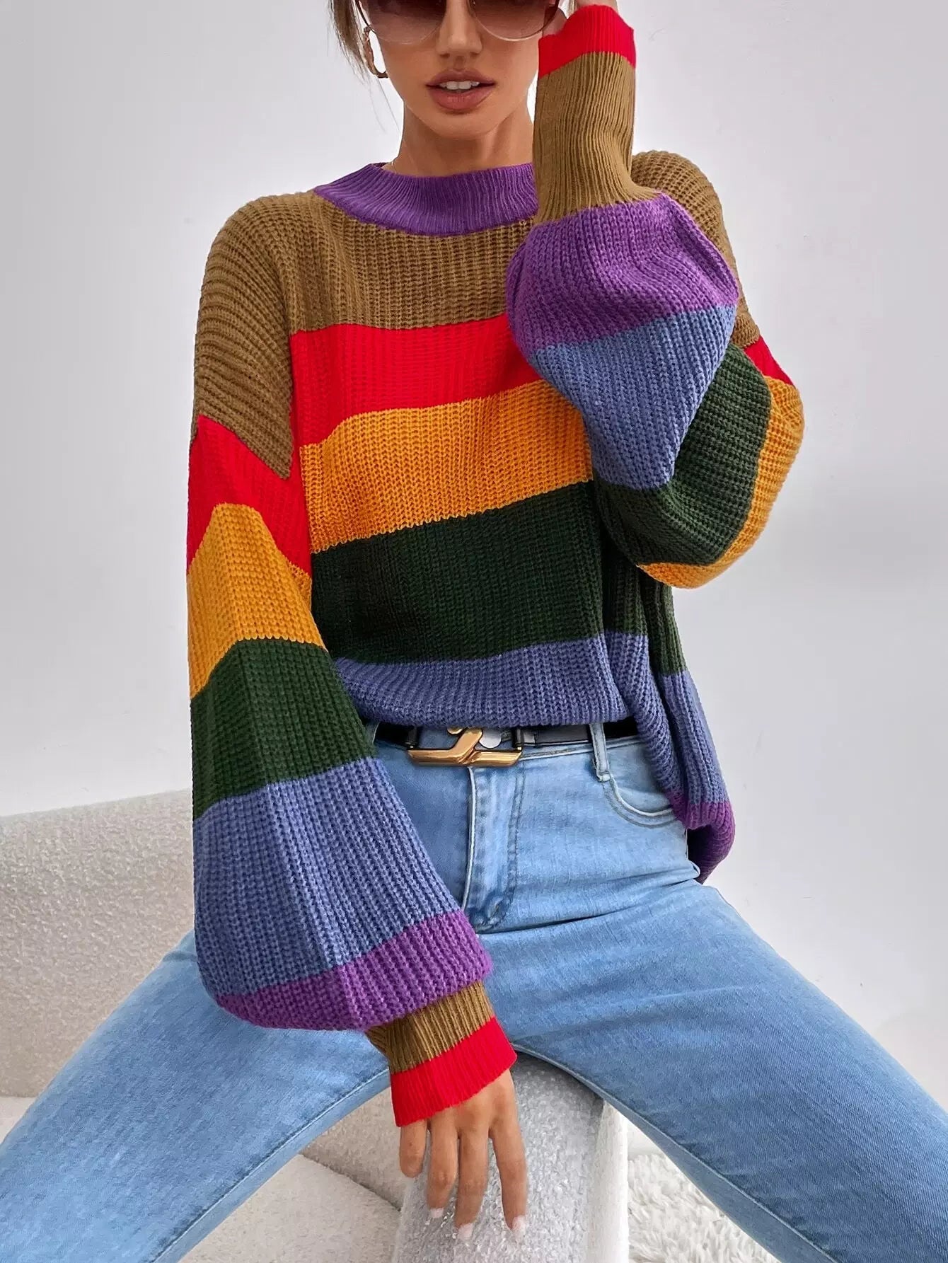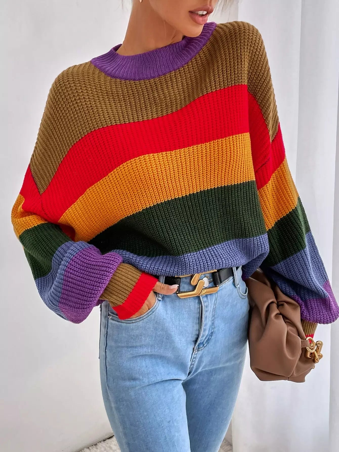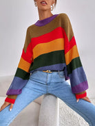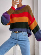 Colorblock Stand Collar Drop Shoulder Sweater