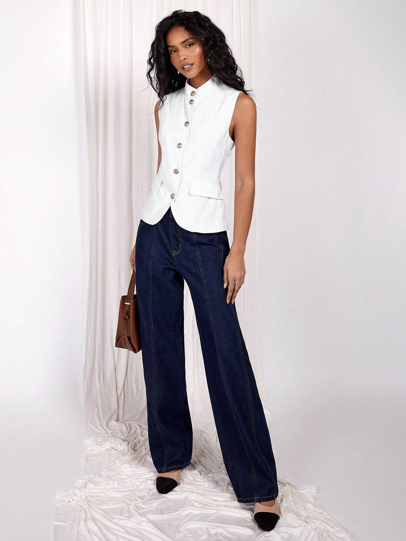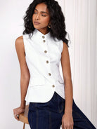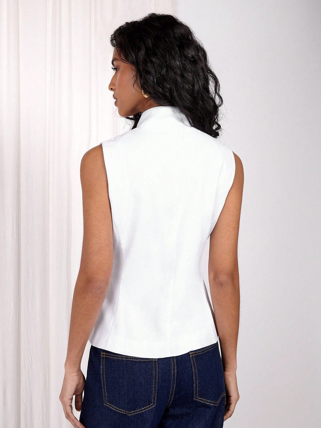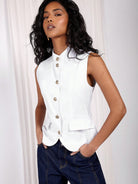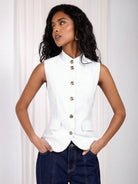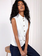 COSMINA Women's Solid Color Front Button Crew Neck Sleeveless Casual Tank Top