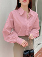 DAZY Solid Color Turndown Collar Button-Up Long Sleeve Casual Top