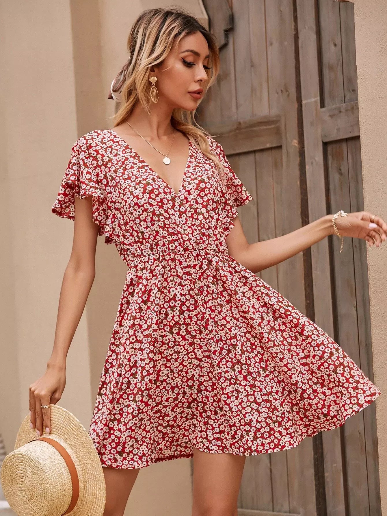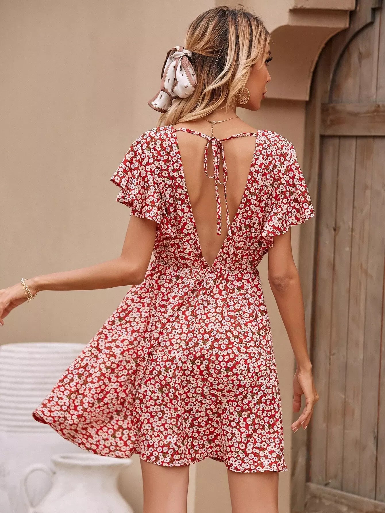 Ditsy Floral Tie Back Backless Dress