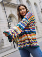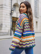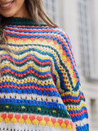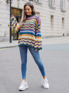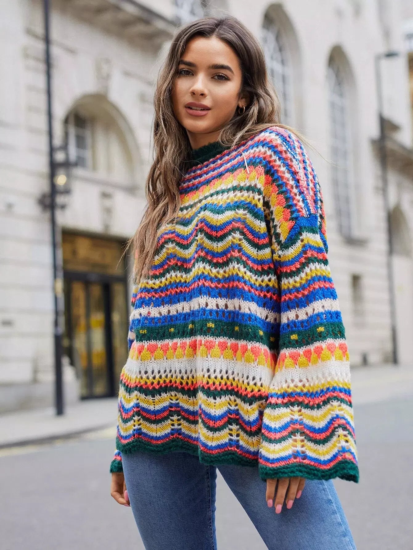 Women - Drop Shoulder Bell Sleeve Colorblock Pointelle Knit Sweater