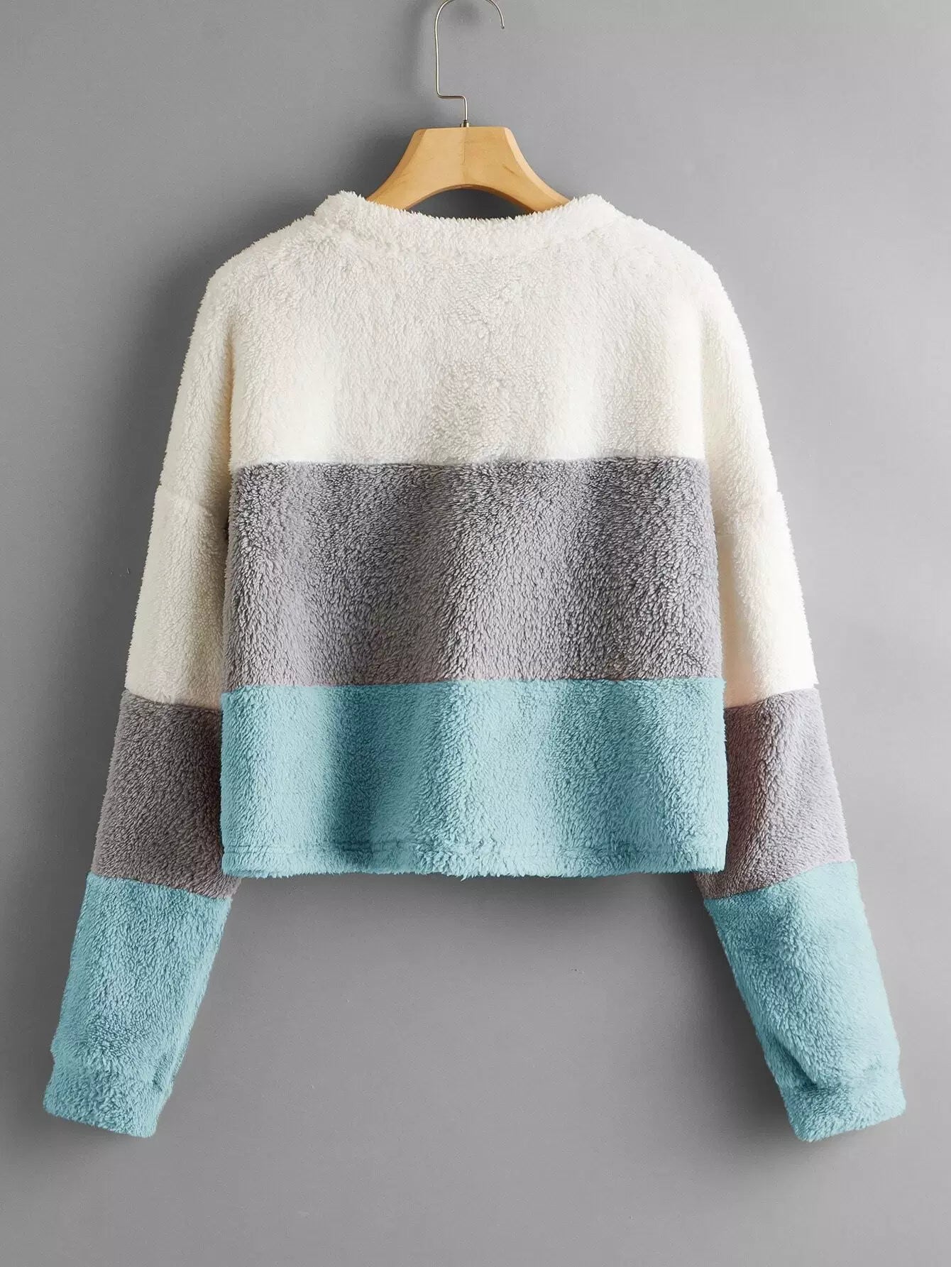 Drop Shoulder Colorblock Flannel Sweatshirt