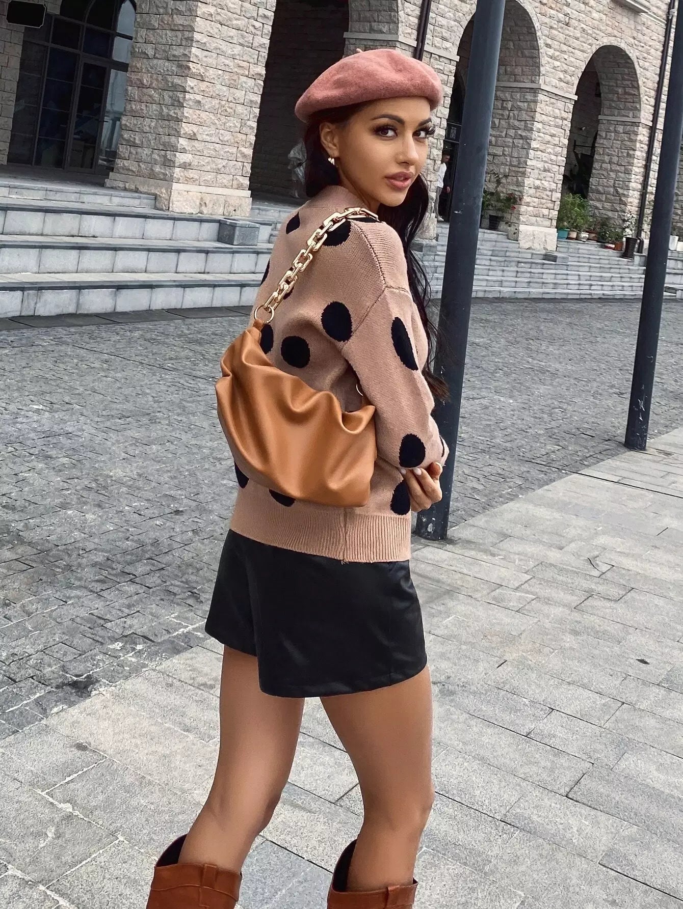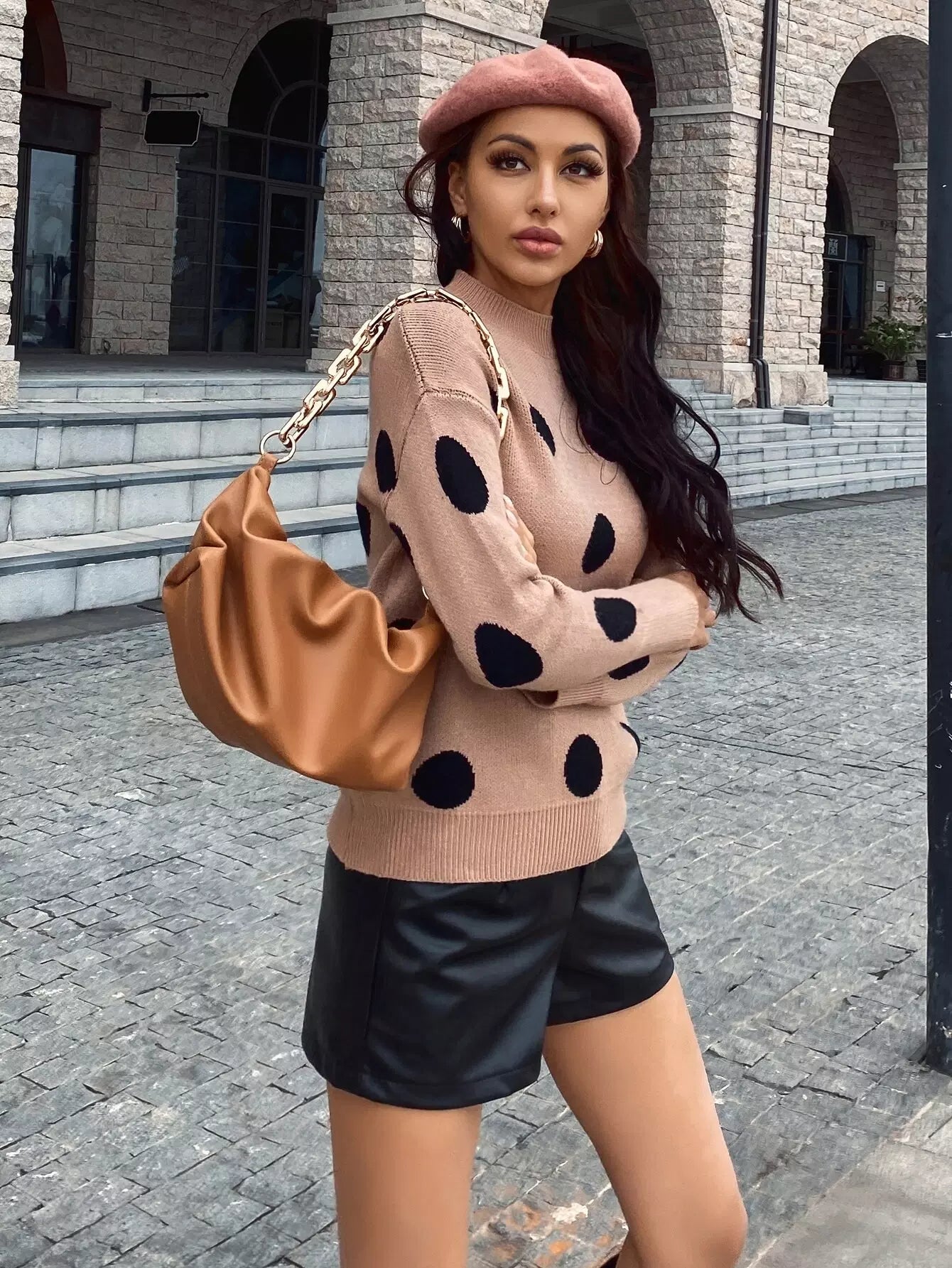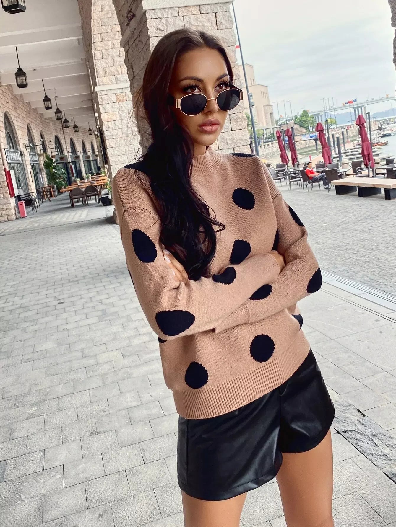 Drop Shoulder Polka Dot Sweater
