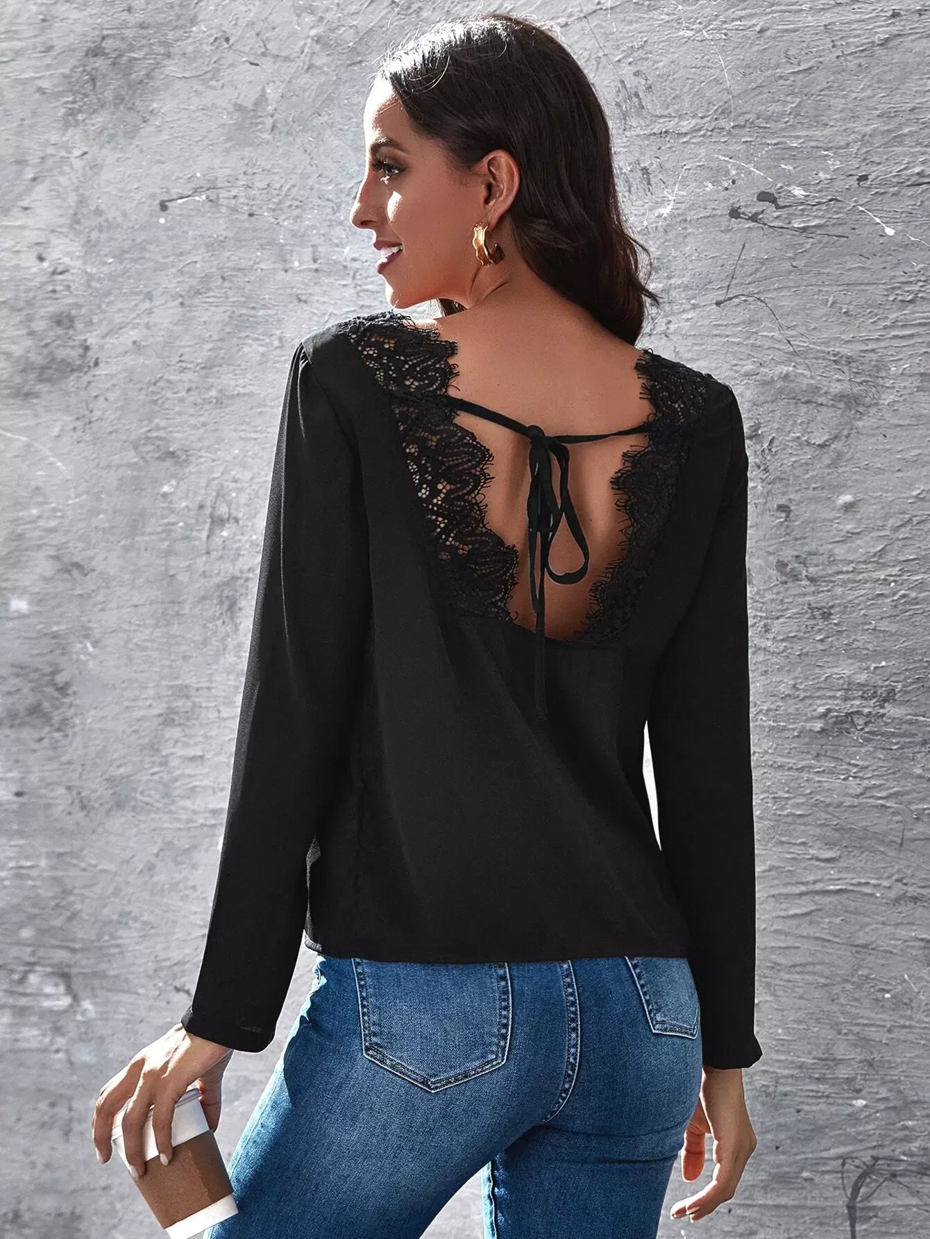 Eyelash Lace Tie Back Solid Top