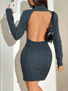EZwear Women Stand Collar Backless Bodycon Mini Sweater Dress, Solid Color, Autumn/Winter
