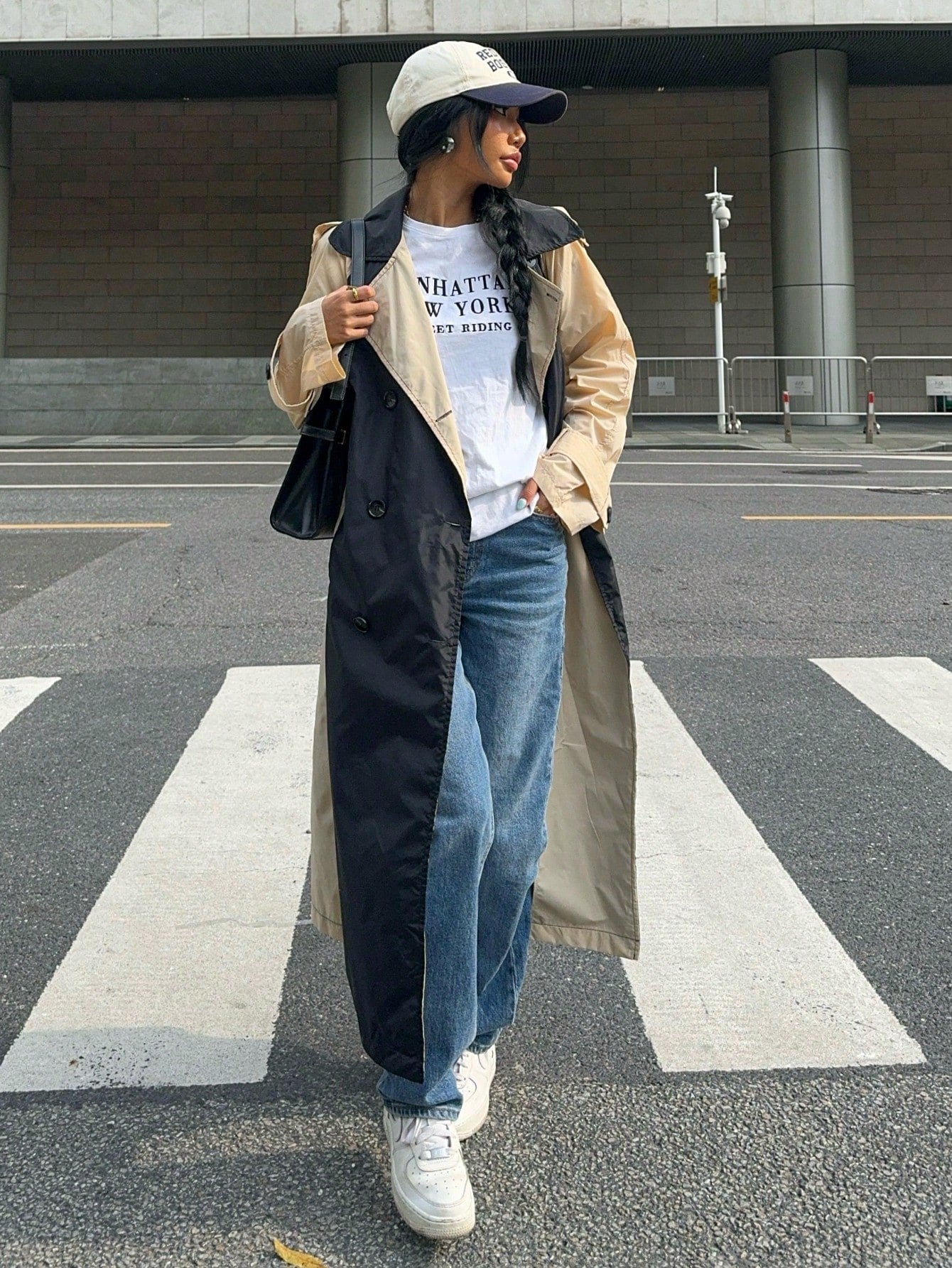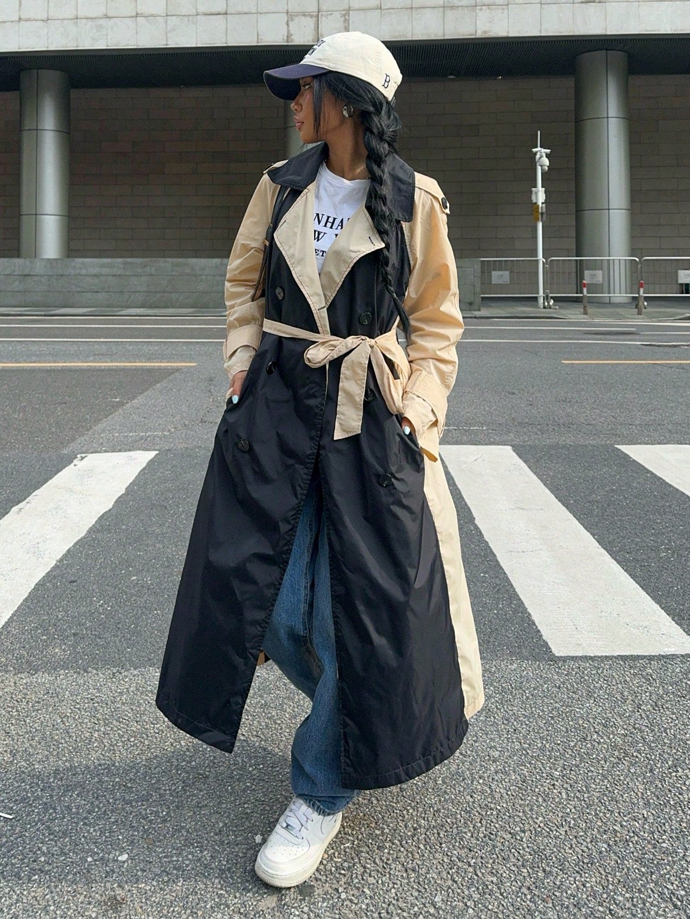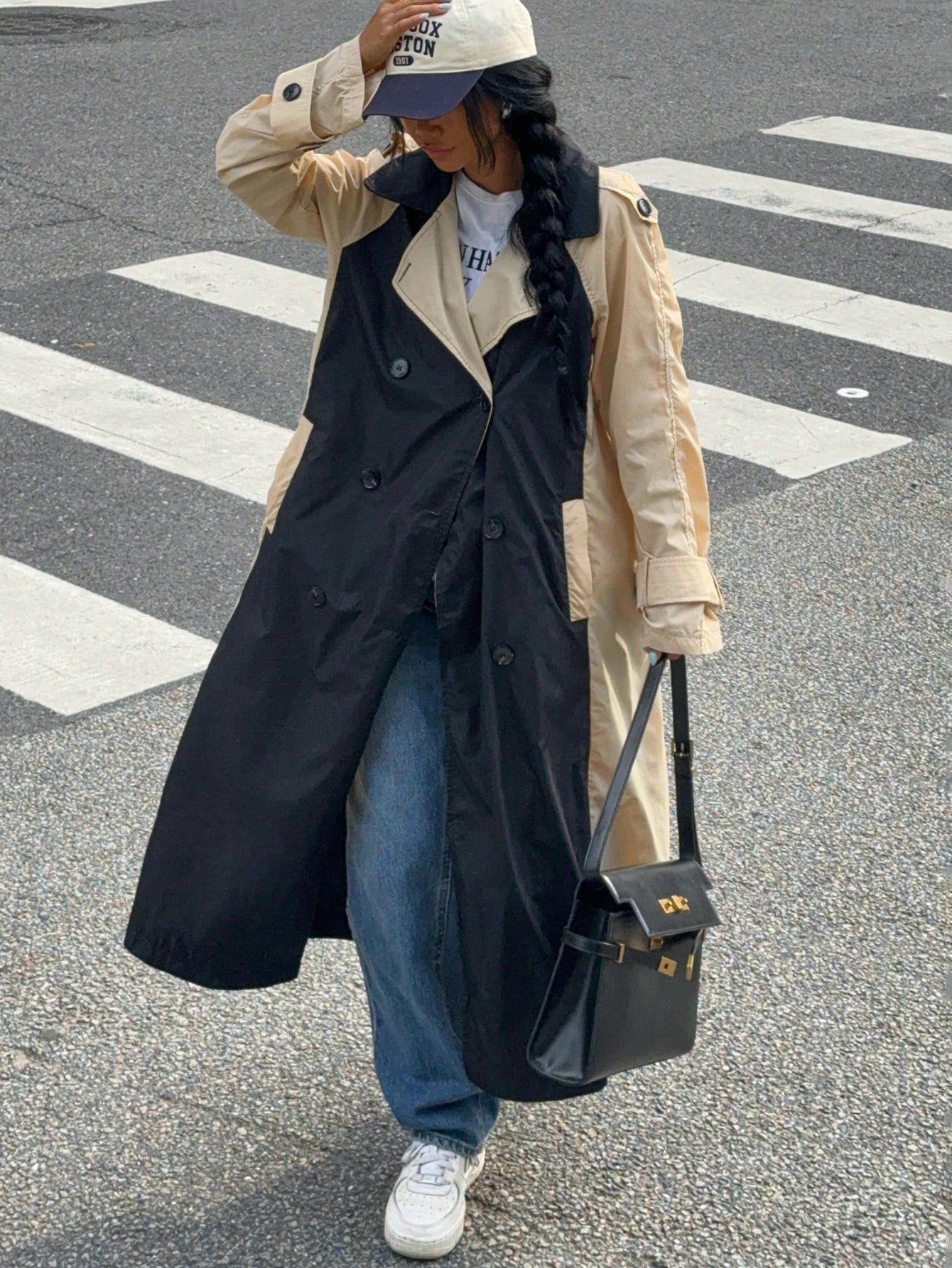 EZwear Women's Fall Black Y2k Solid Color Simple Daily PU Trench Coat Jacket