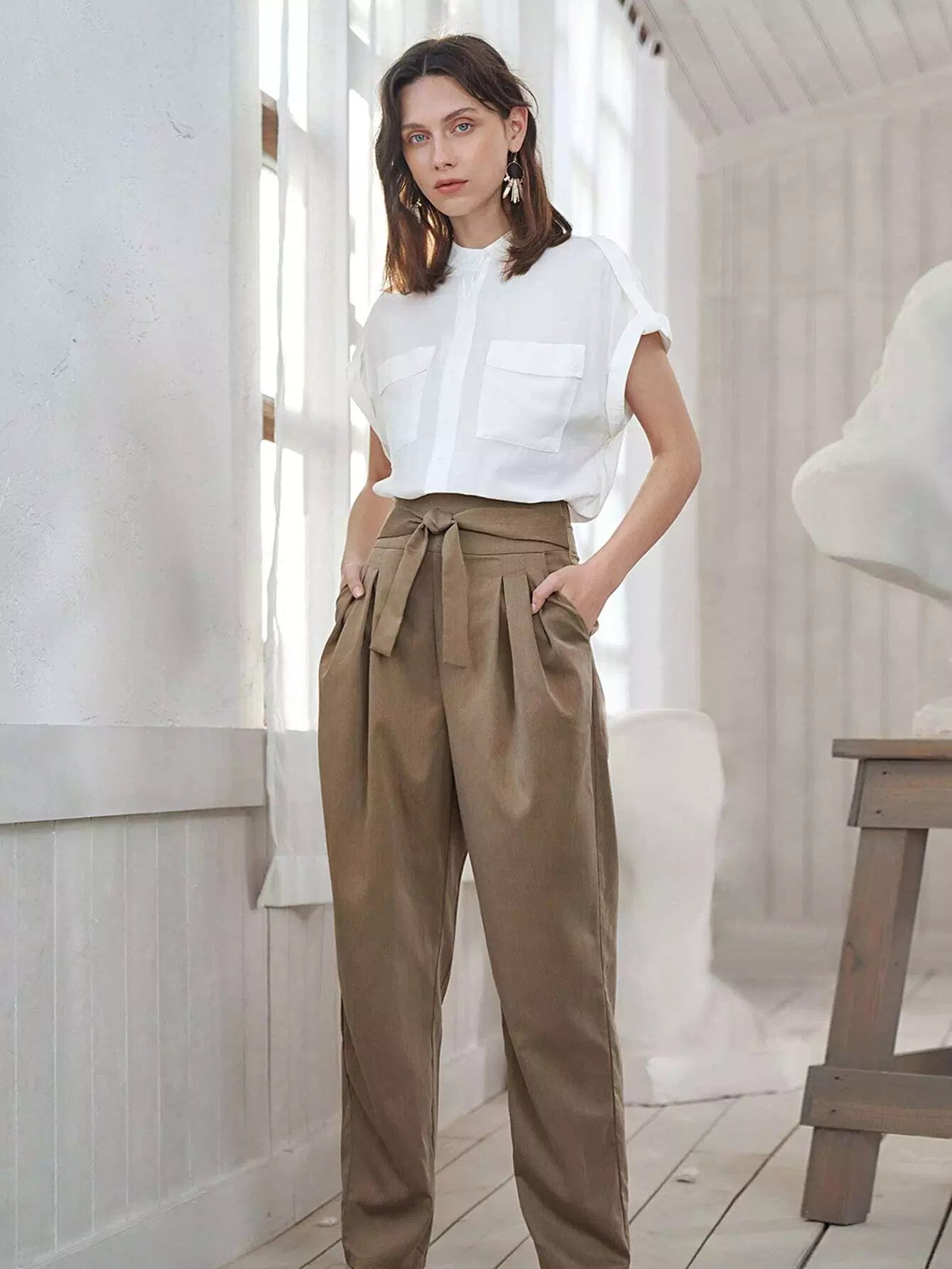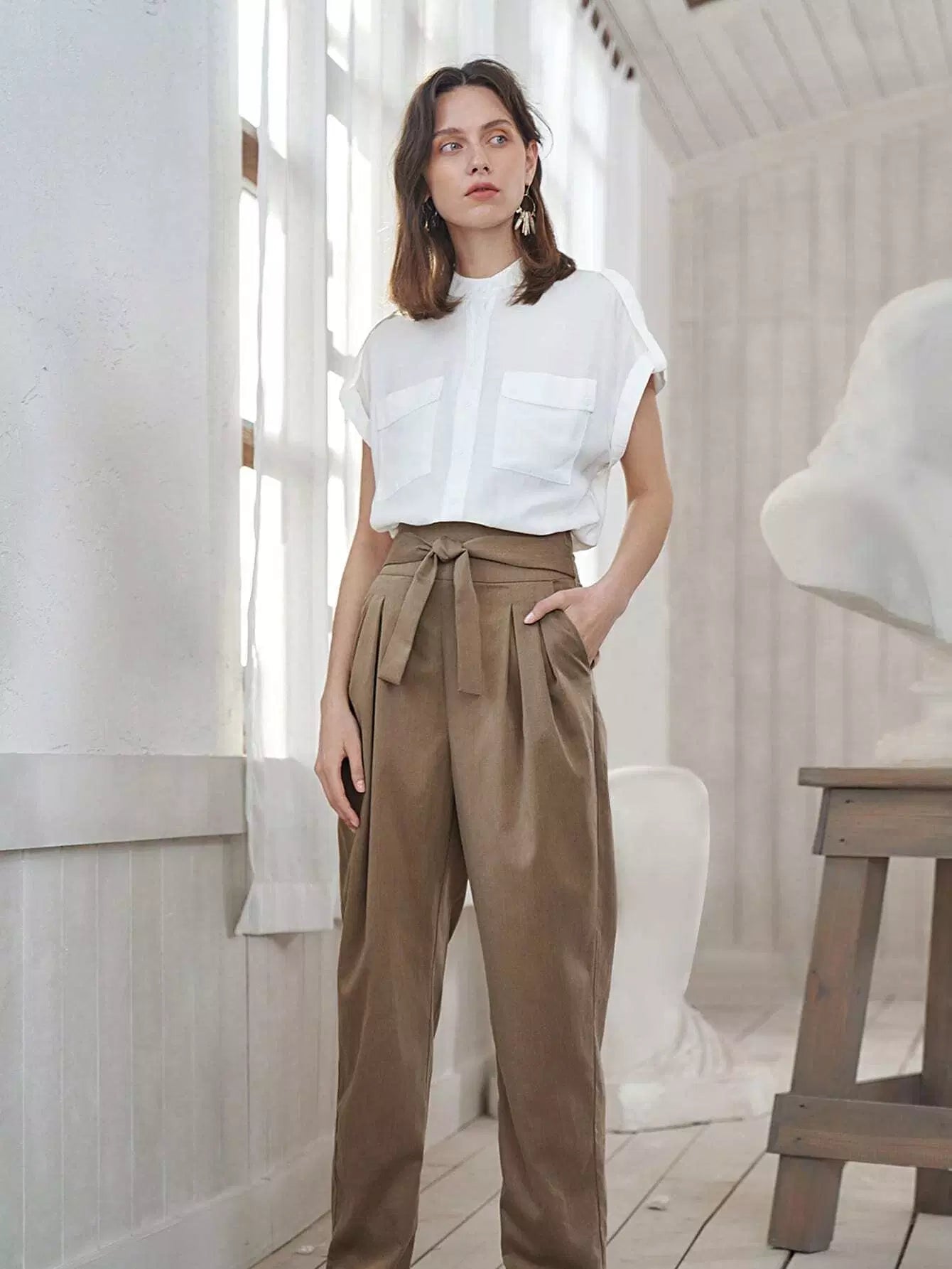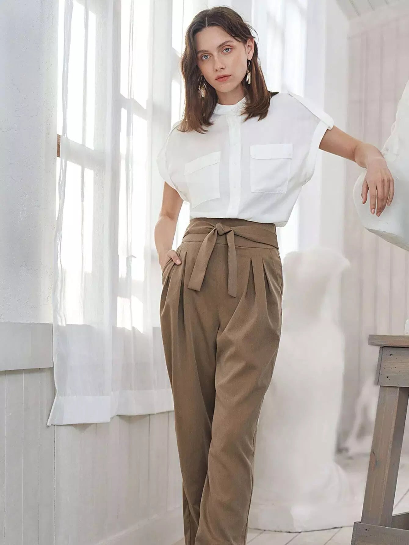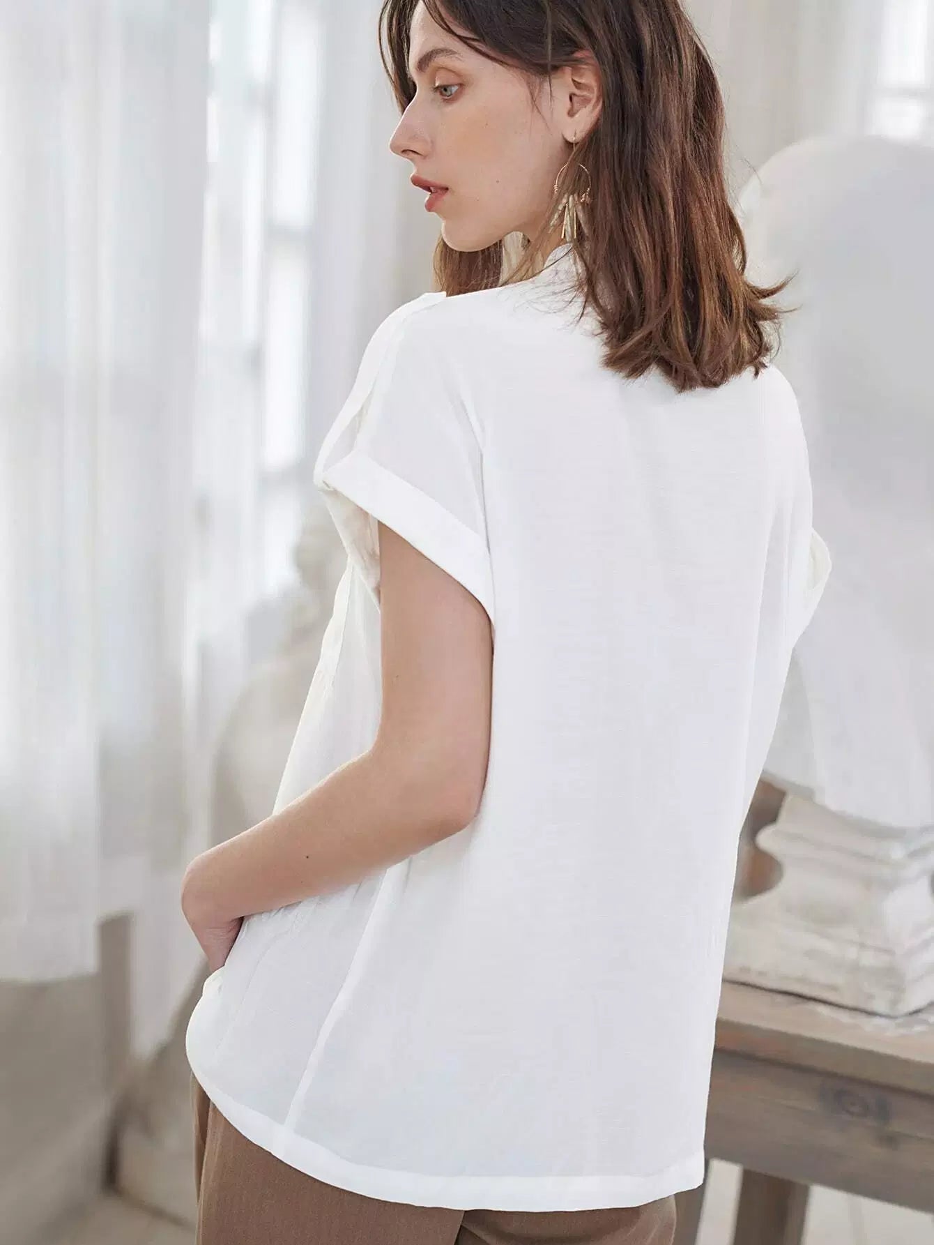 Flap Pocket Front Cuffed Blouse