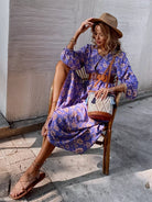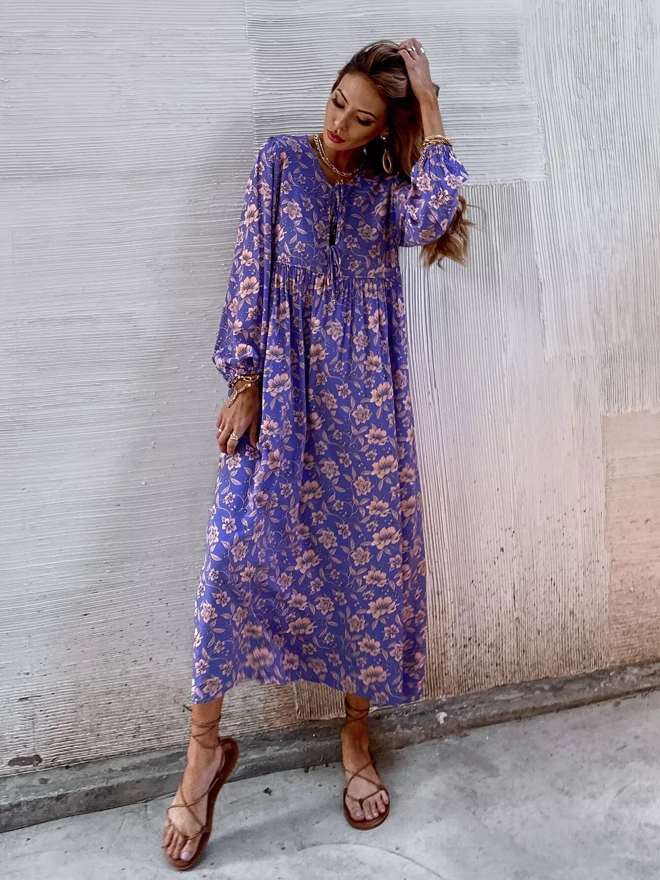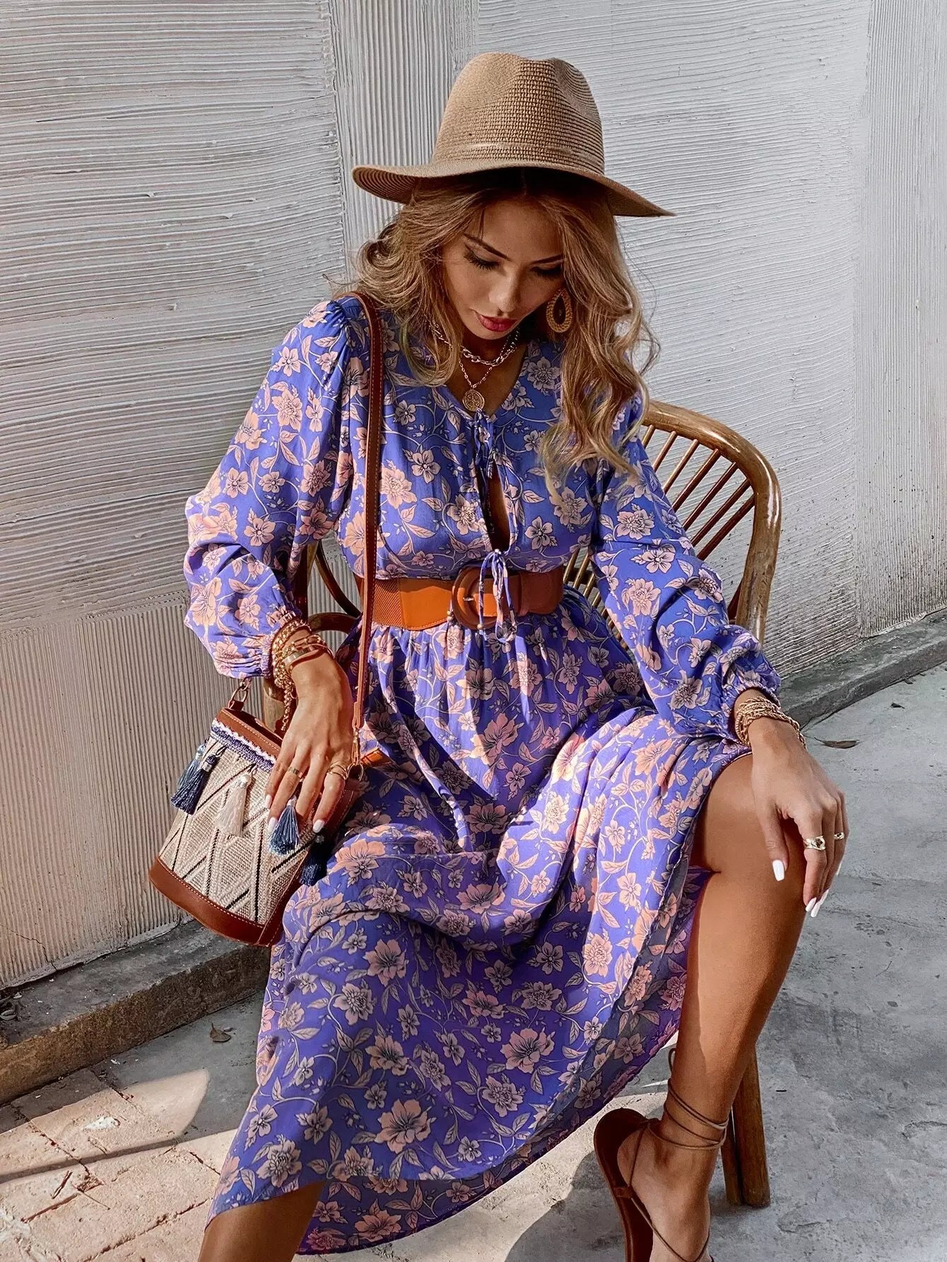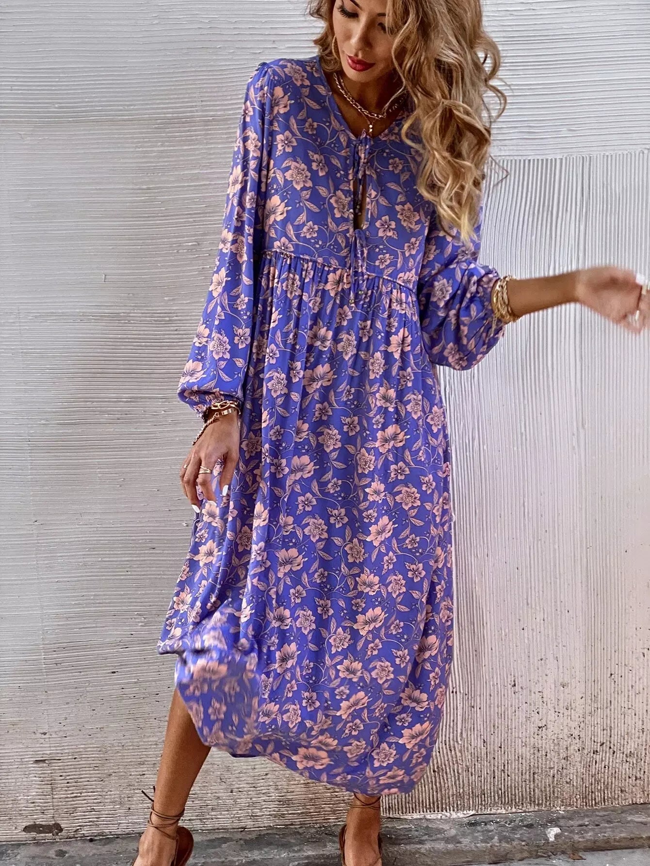 Floral Keyhole Tie Front Smock Dress Without Belt