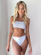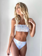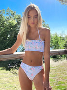 Floral Random Print Lettuce Trim Bikini Swimsuit