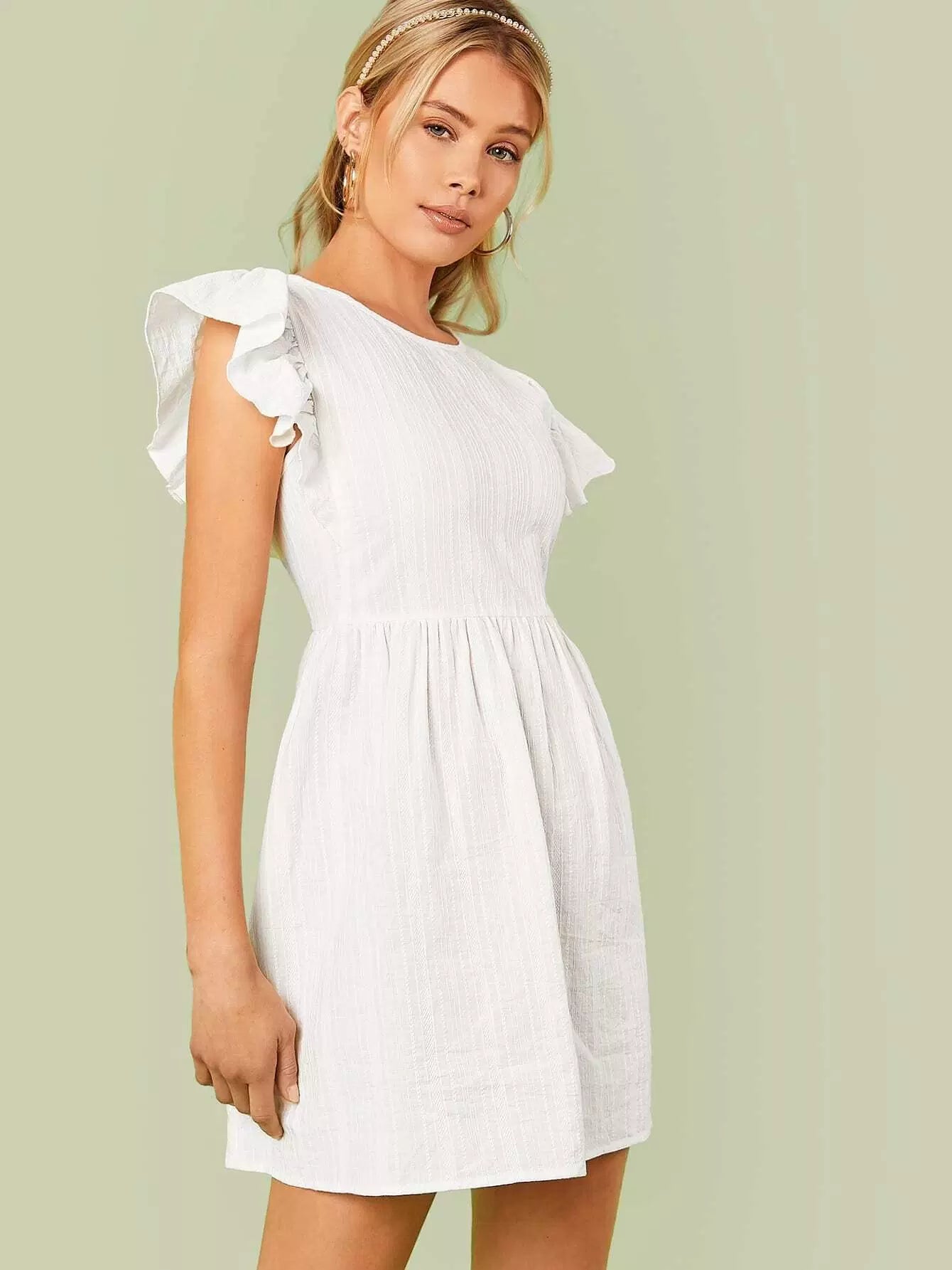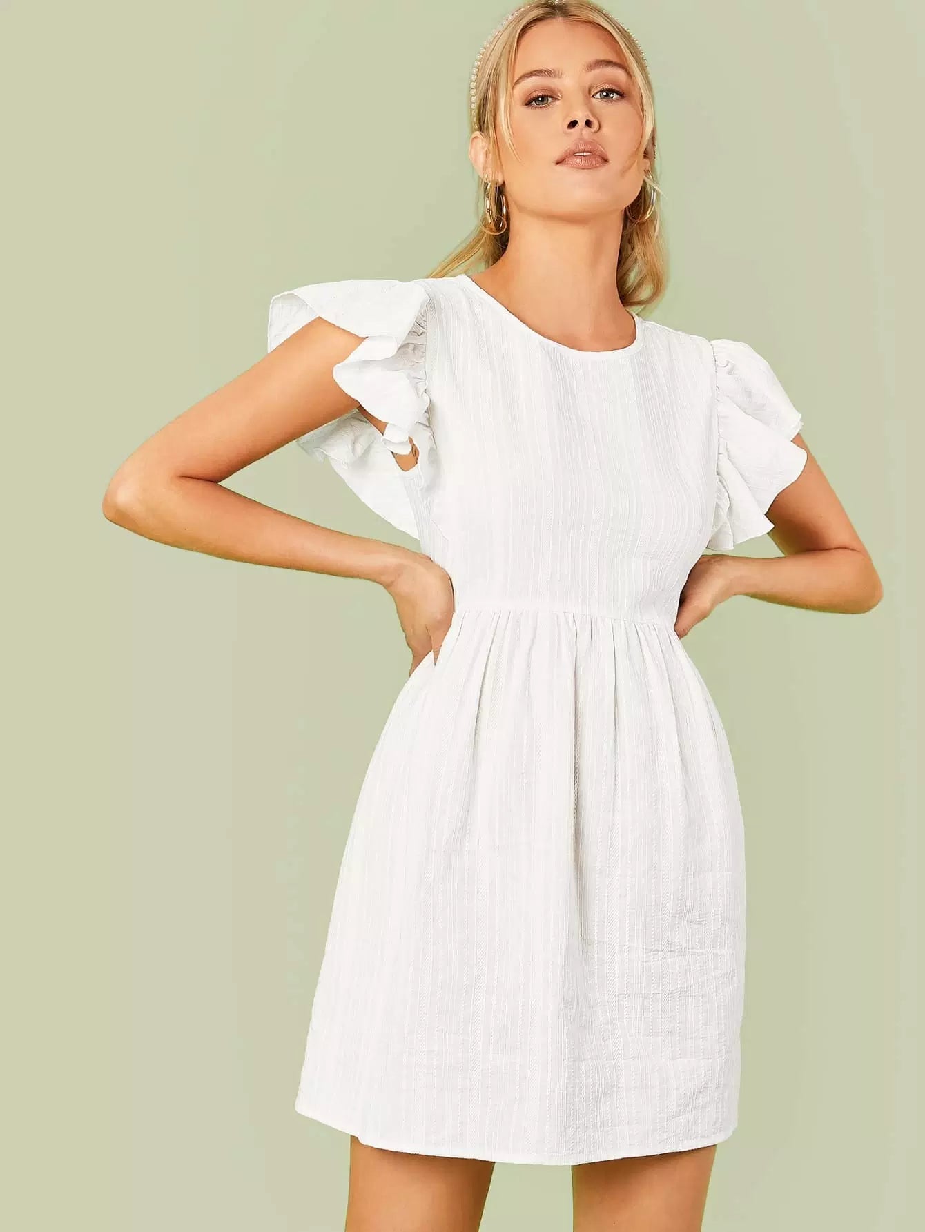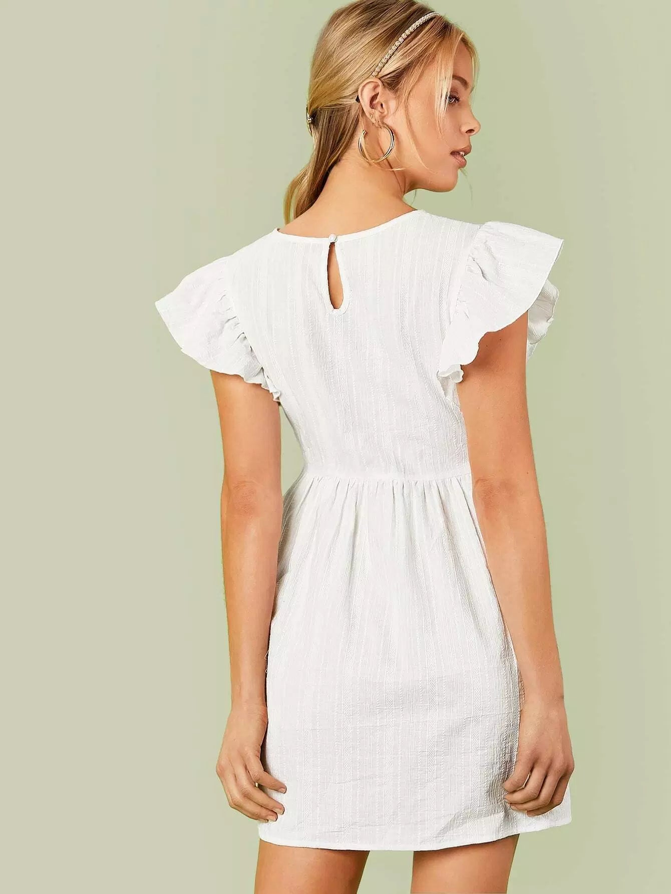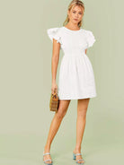 Flutter Sleeve Keyhole Back Dress