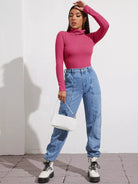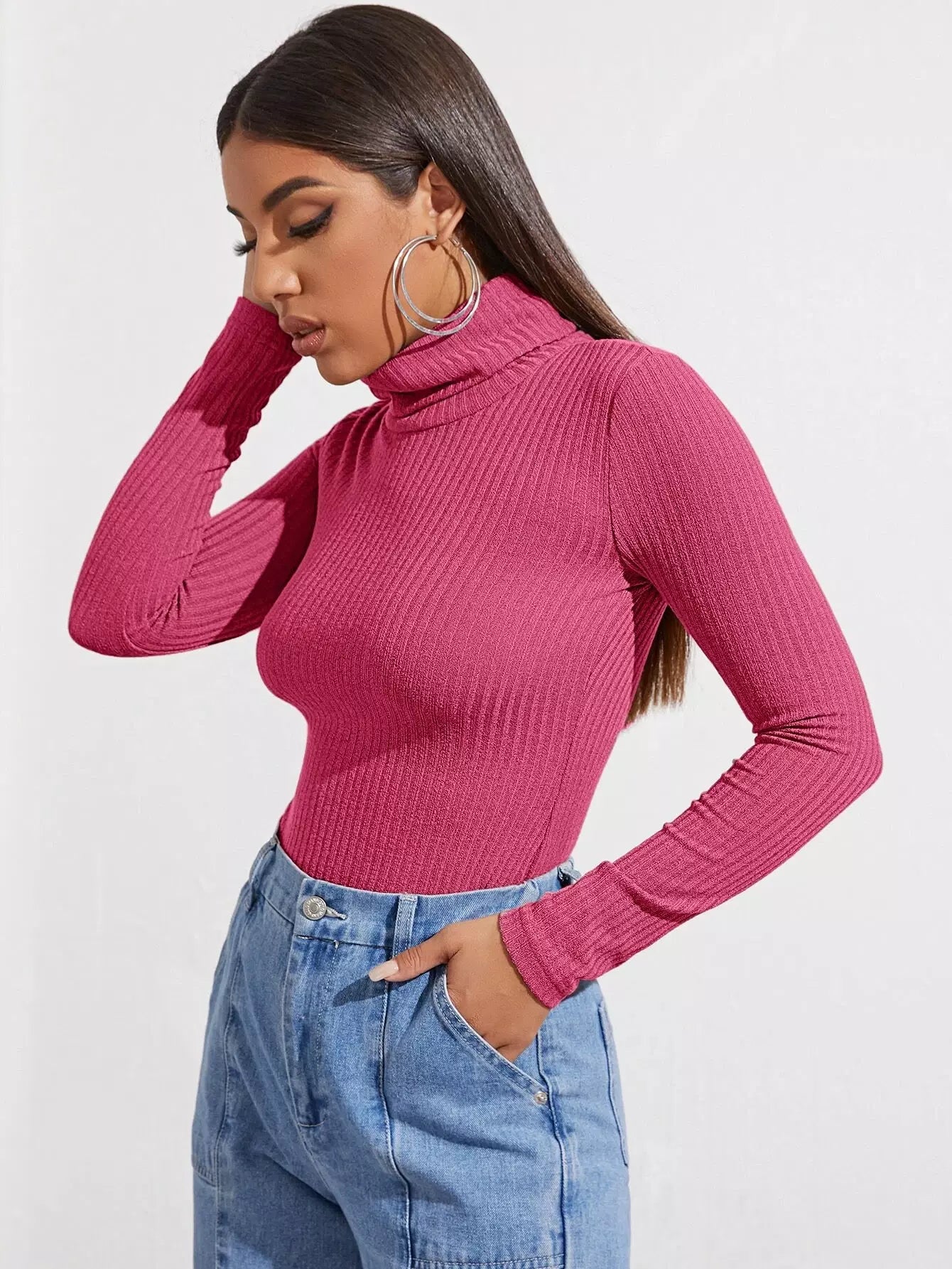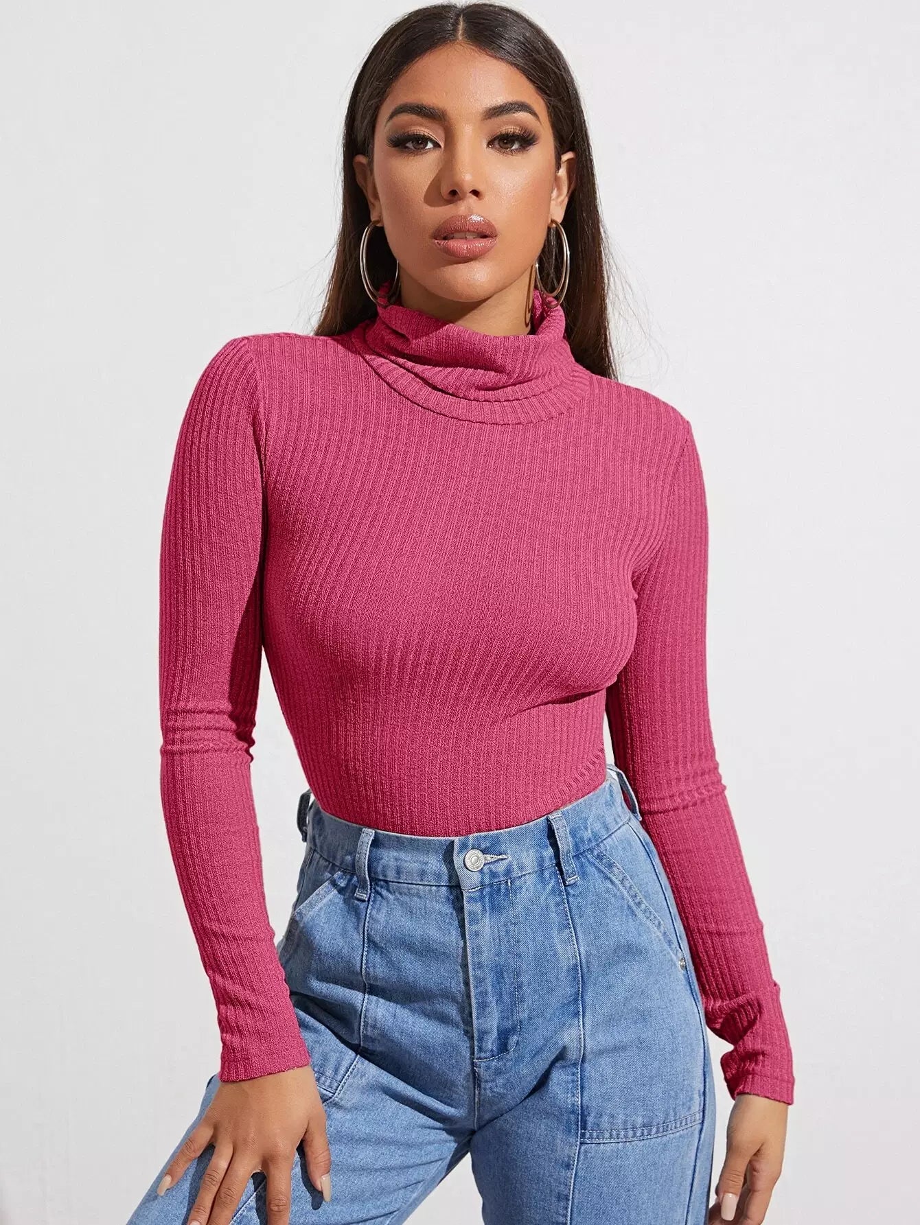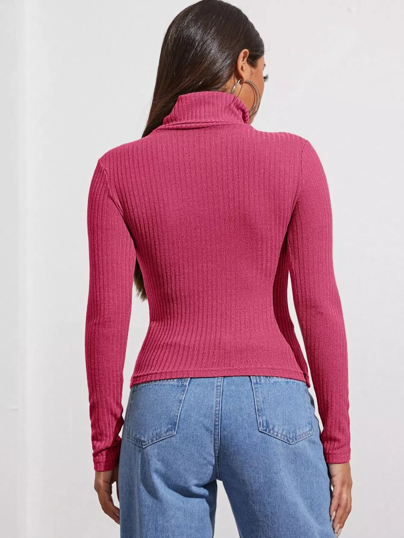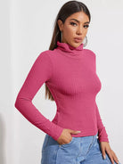 Funnel Neck Rib-knit Top