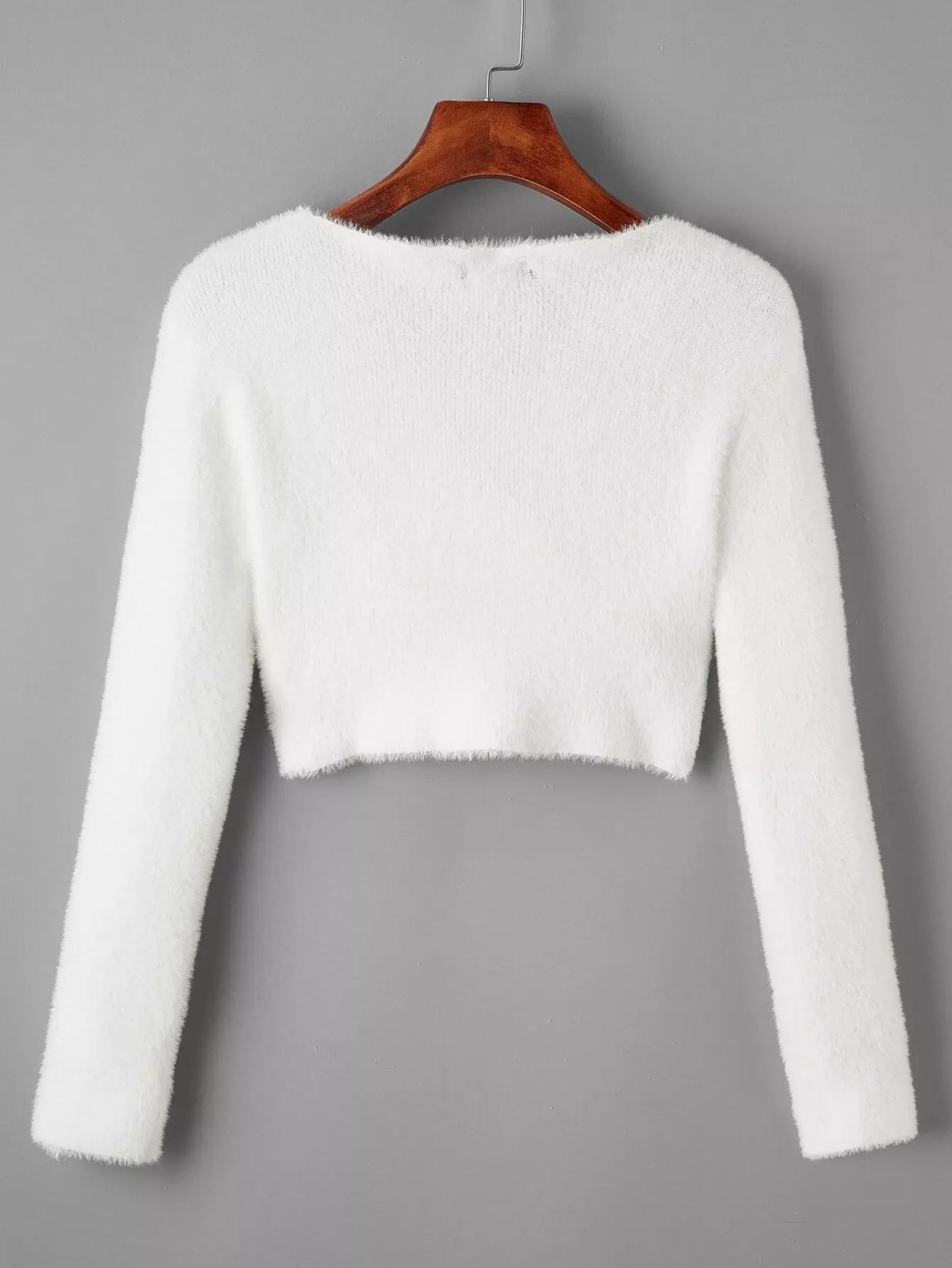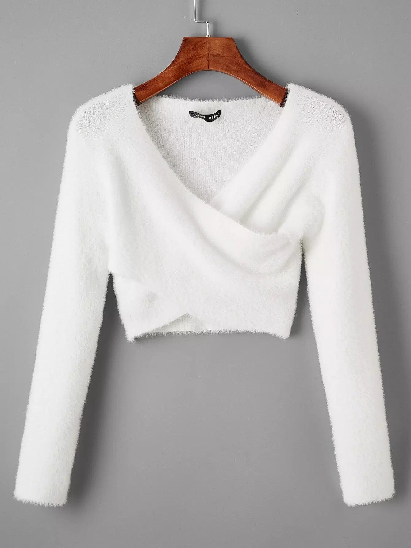 Women - Fuzzy Knit Crisscross Cropped Sweater