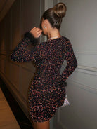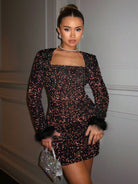 Glamine Women's Faux Fur Splicing Lapel Mini Sexy Party Dress