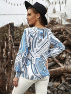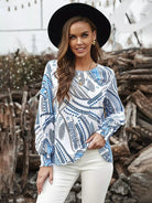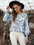 Graphic Print Bishop Sleeve Blouse