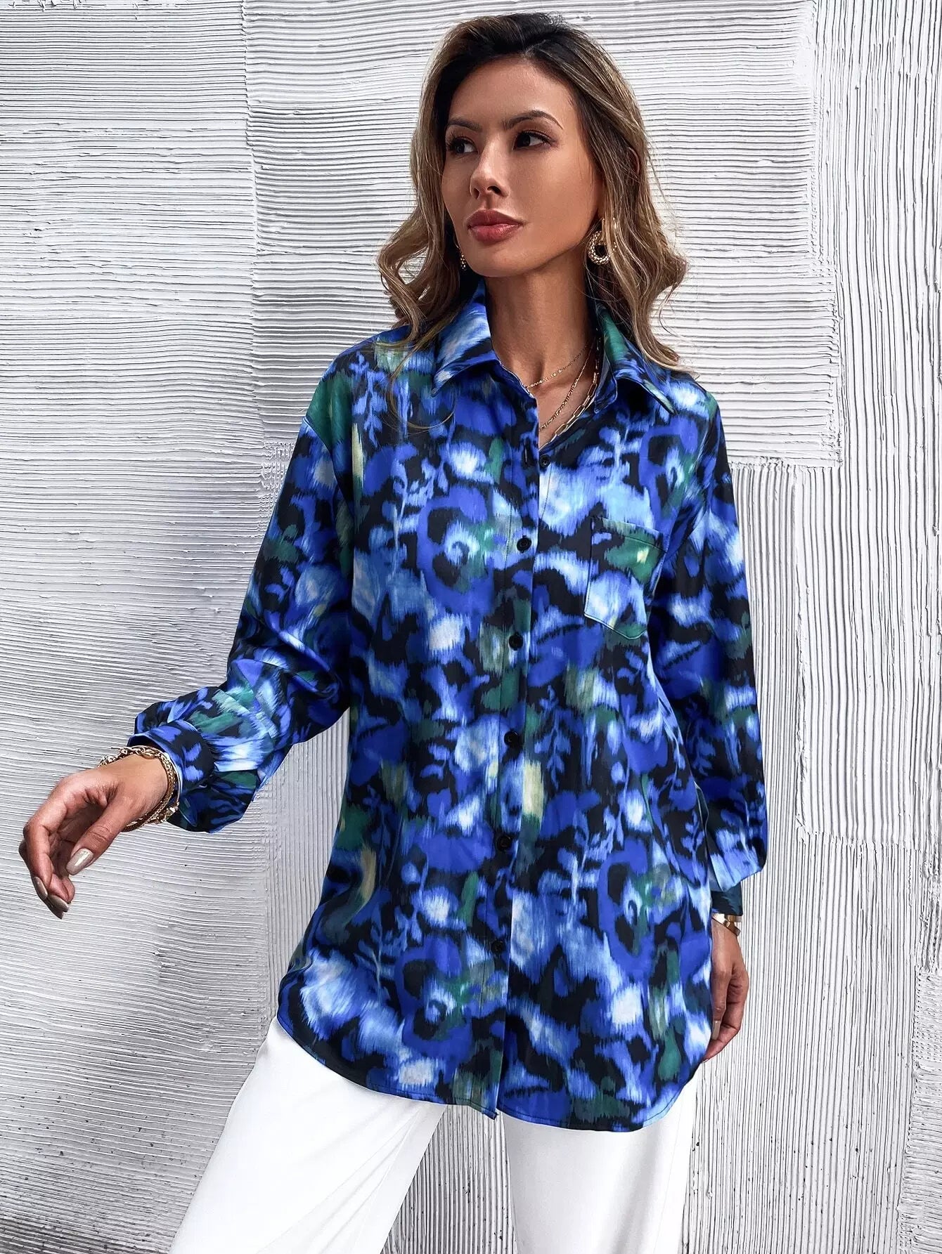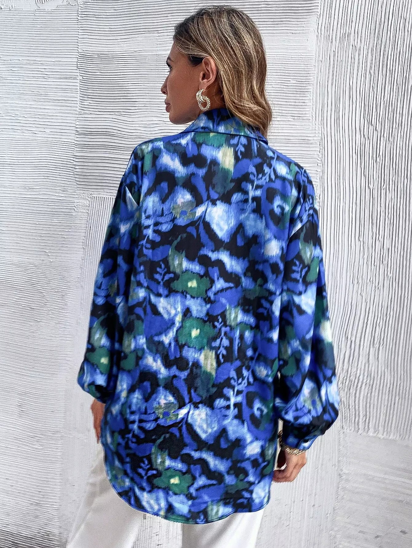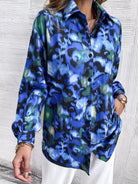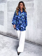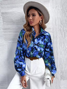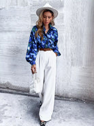 Graphic Print Pocket Patched Bishop Sleeve Blouse