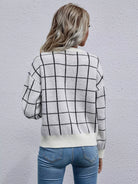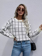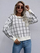 Women - Grid Pattern Drop Shoulder Sweater