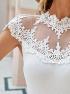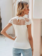 Women - Guipure Lace Contrast Mesh Mock Neck Tee