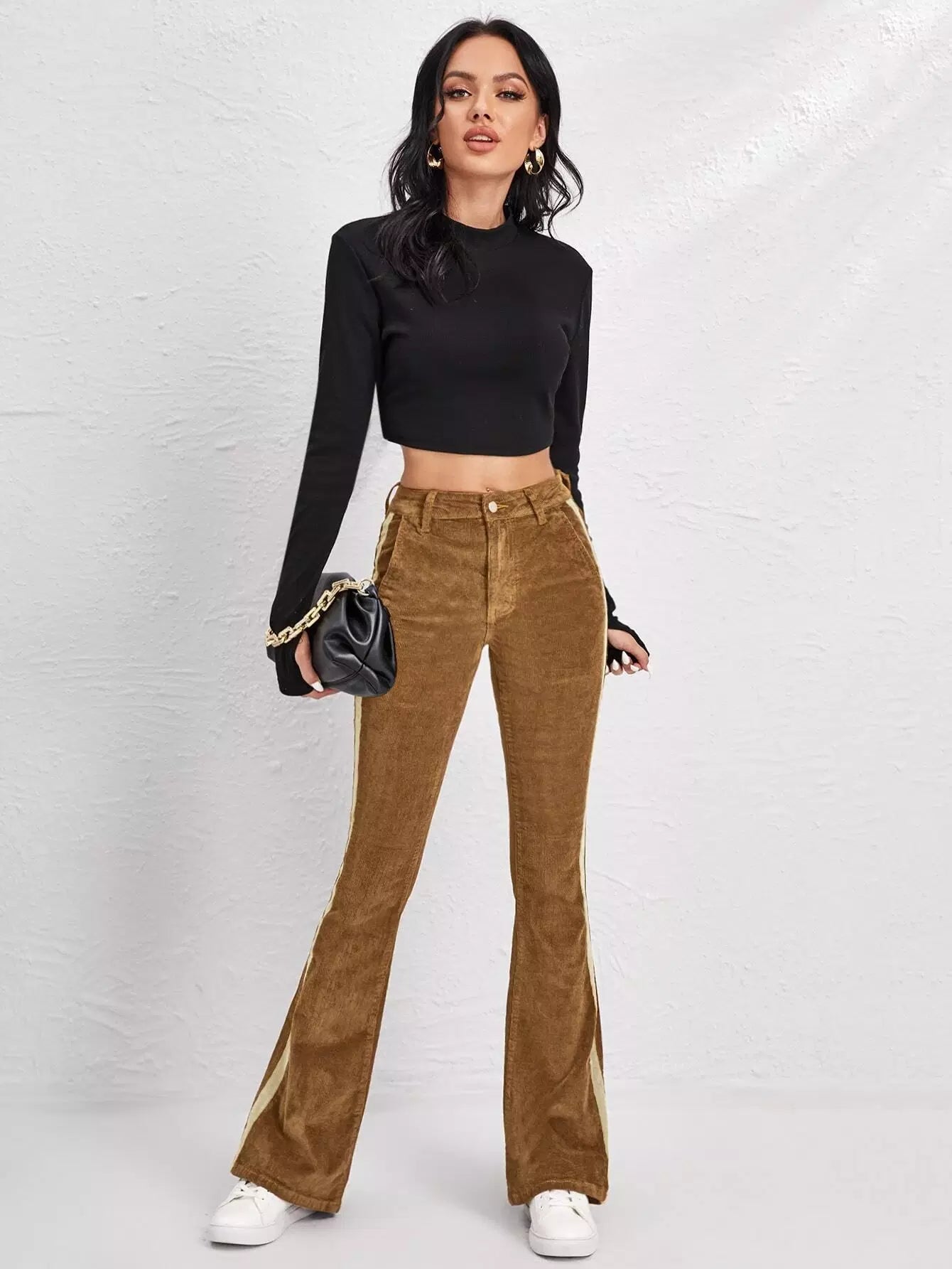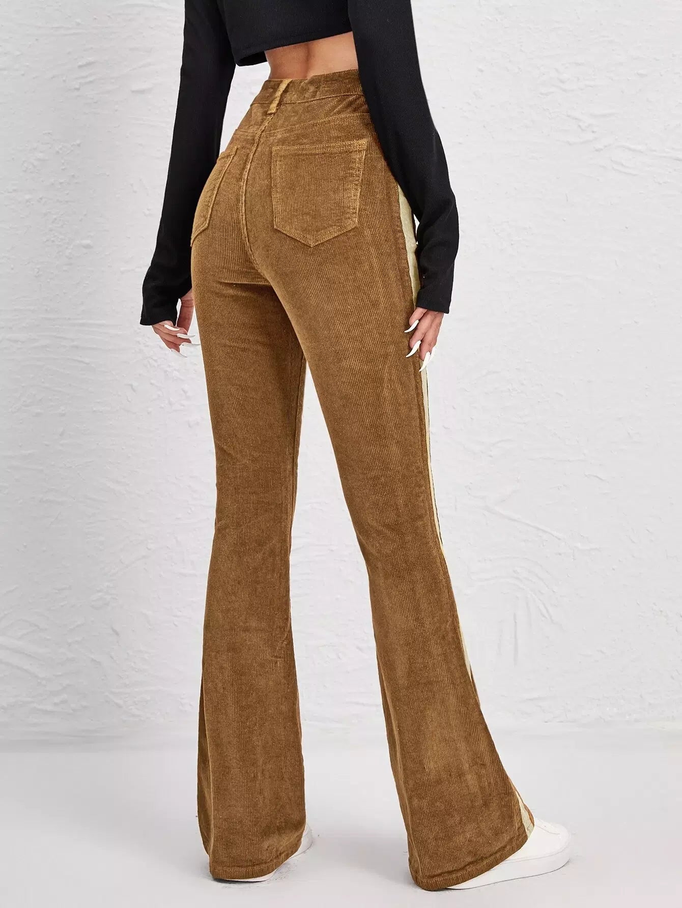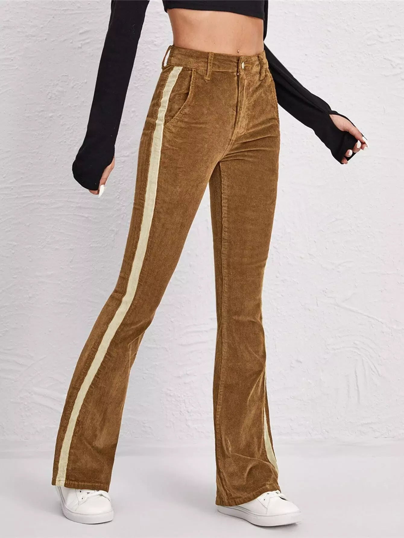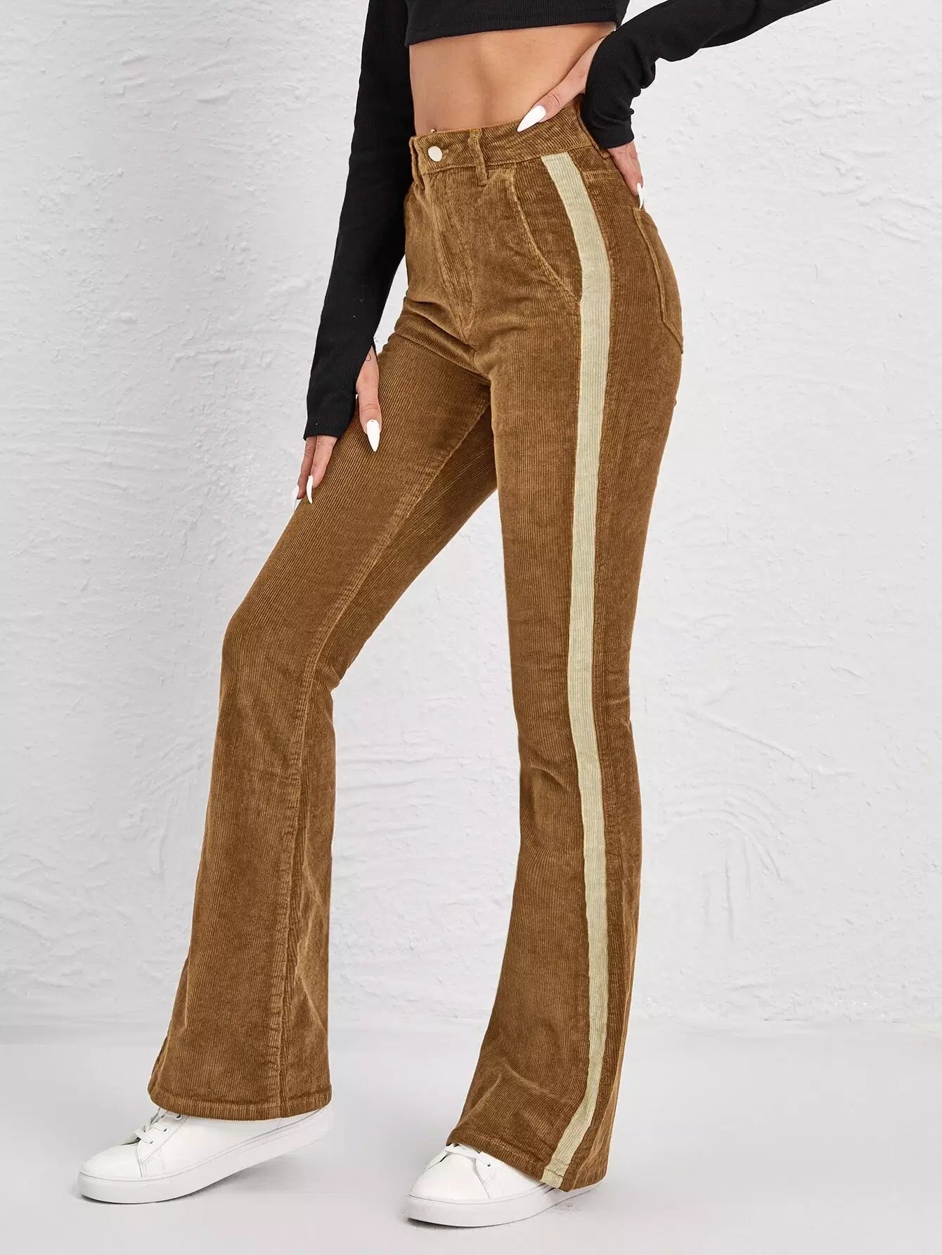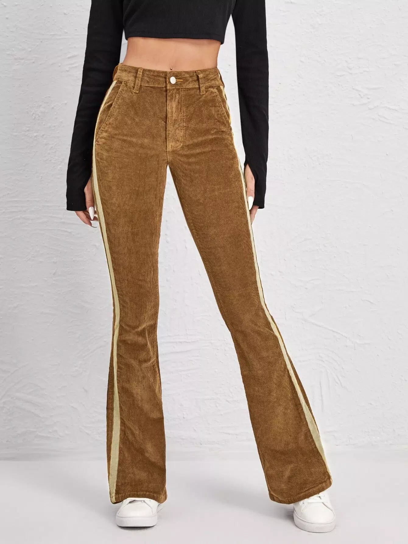 Women - High Waist Side Stripe Flare Leg Cord Pants