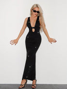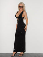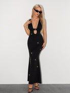 ICON Slim Fit Deep V-Neck Rhinestone Embellished Fish Tail Long Dress