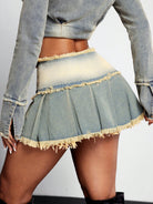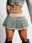 ICON Women's Patchwork Fringed Studded Decor Side Zipper Short Casual Denim Skirt