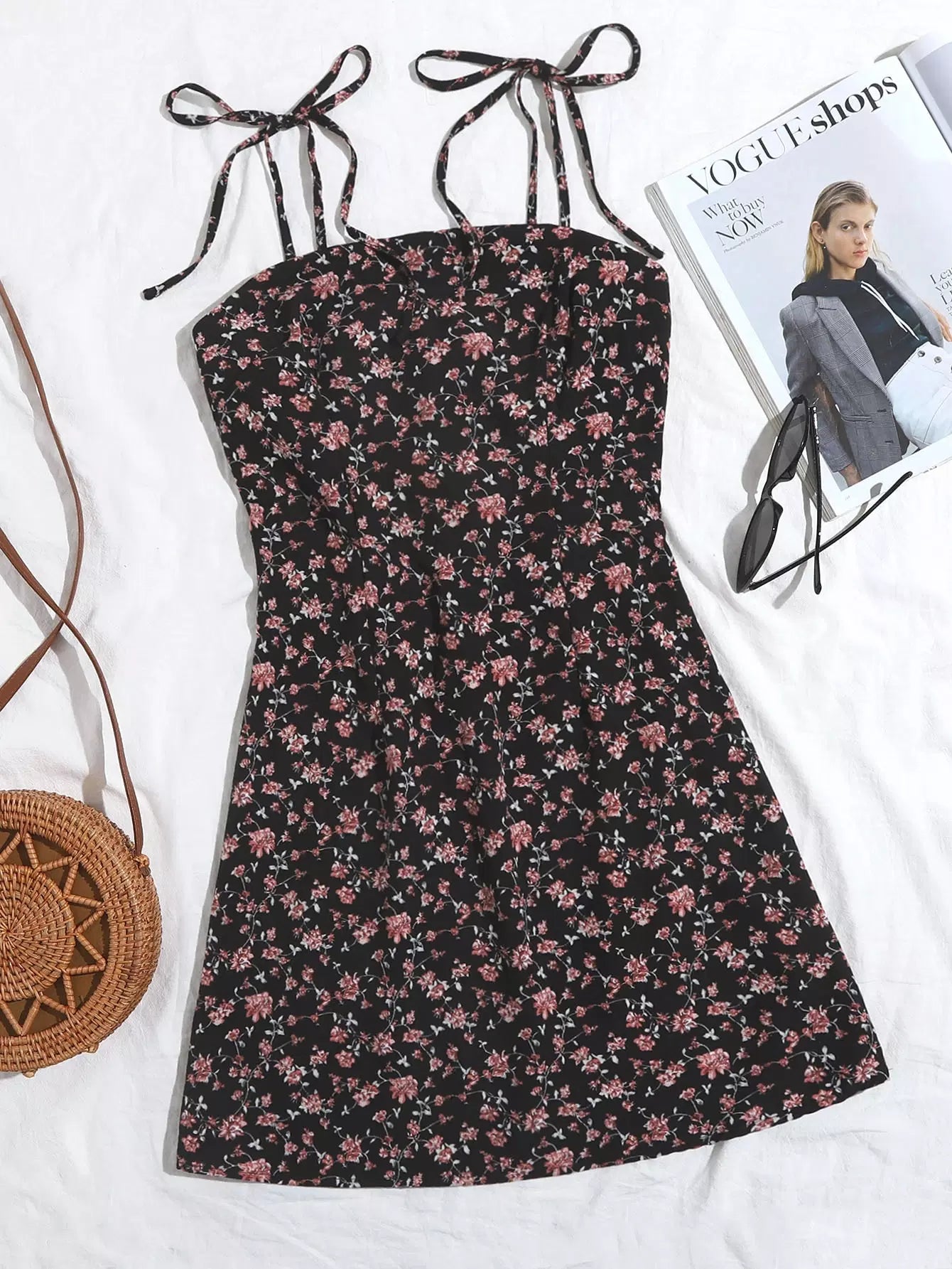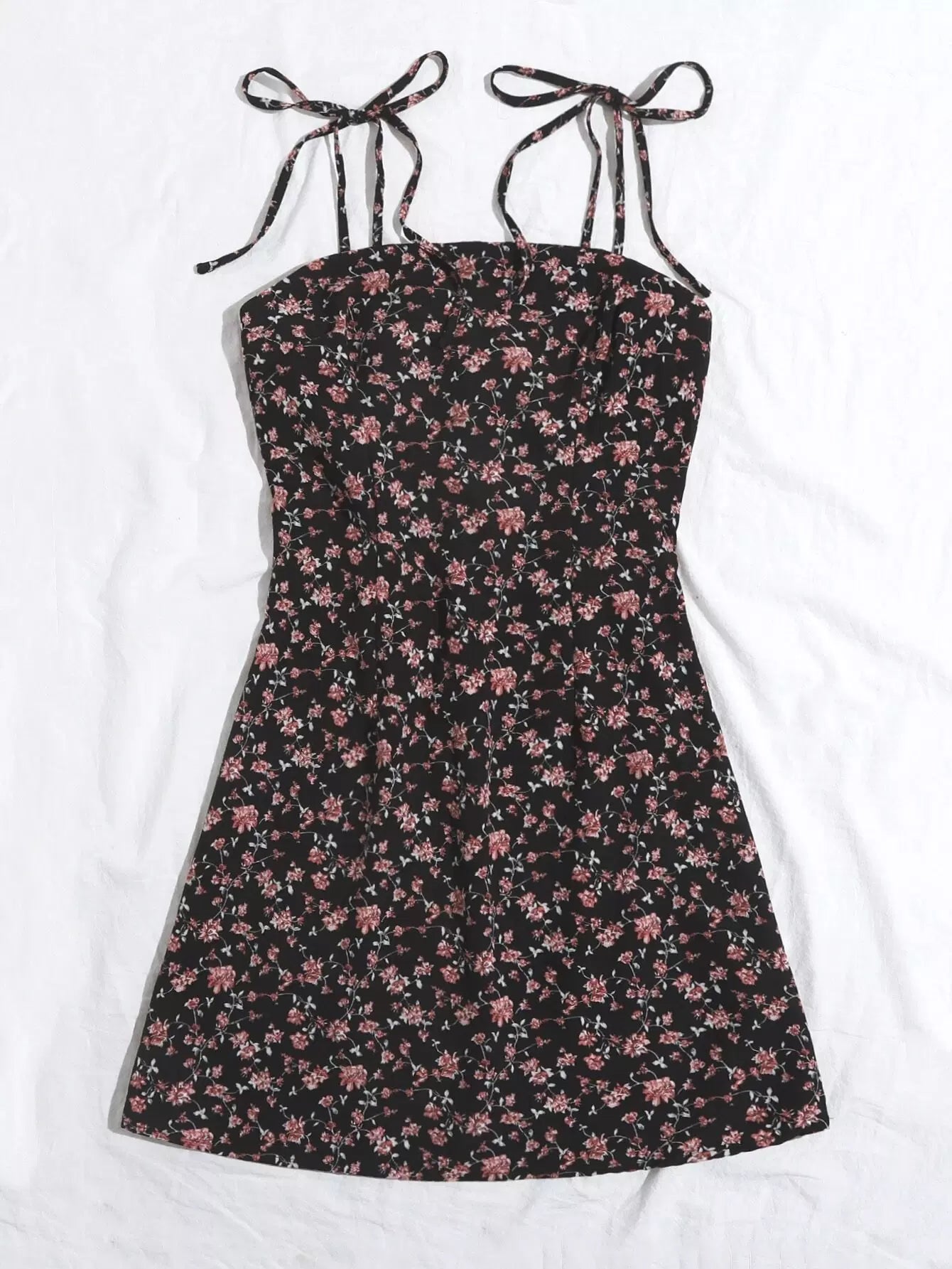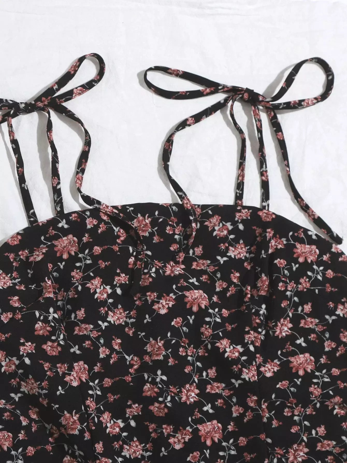 Knotted Shoulder Ditsy Floral Print Cami Dress