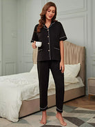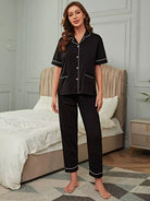 Women - Lapel Neck Contrast Binding Pajama Set