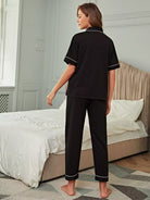 Lapel Neck Contrast Binding Pajama Set