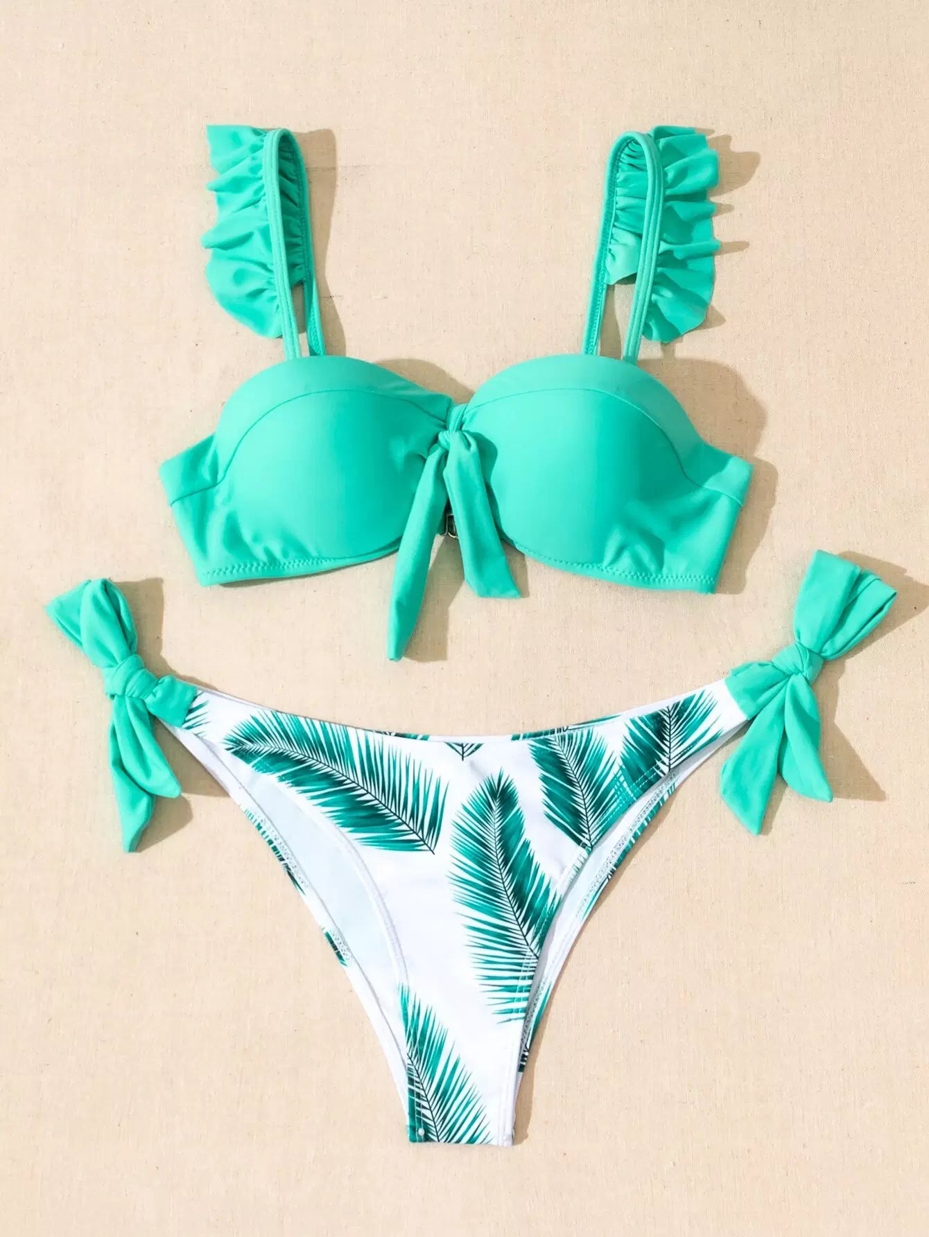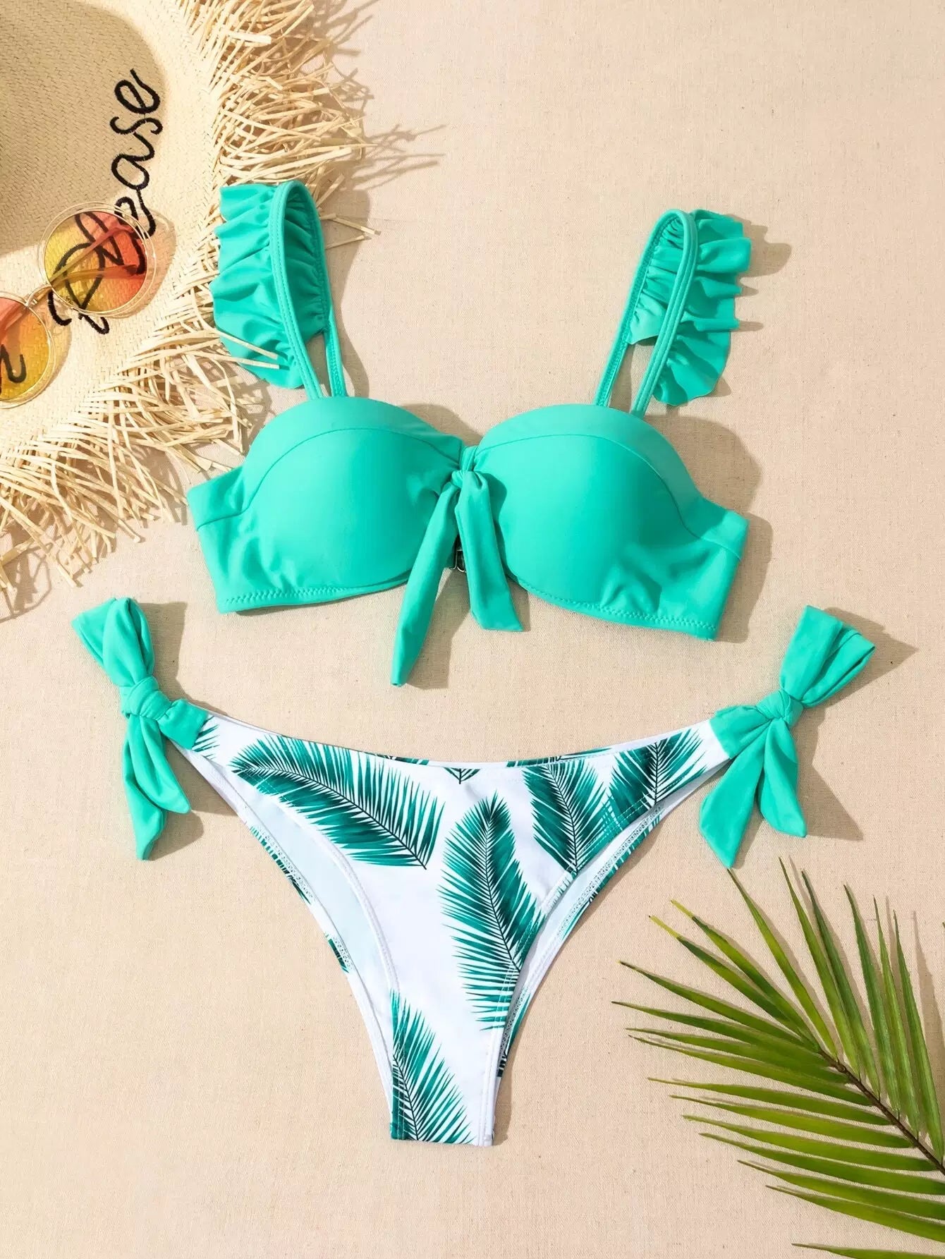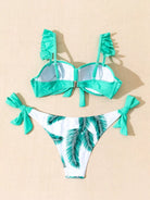 Leaf Print Ruffle Tie Side Bikini Swimsuit