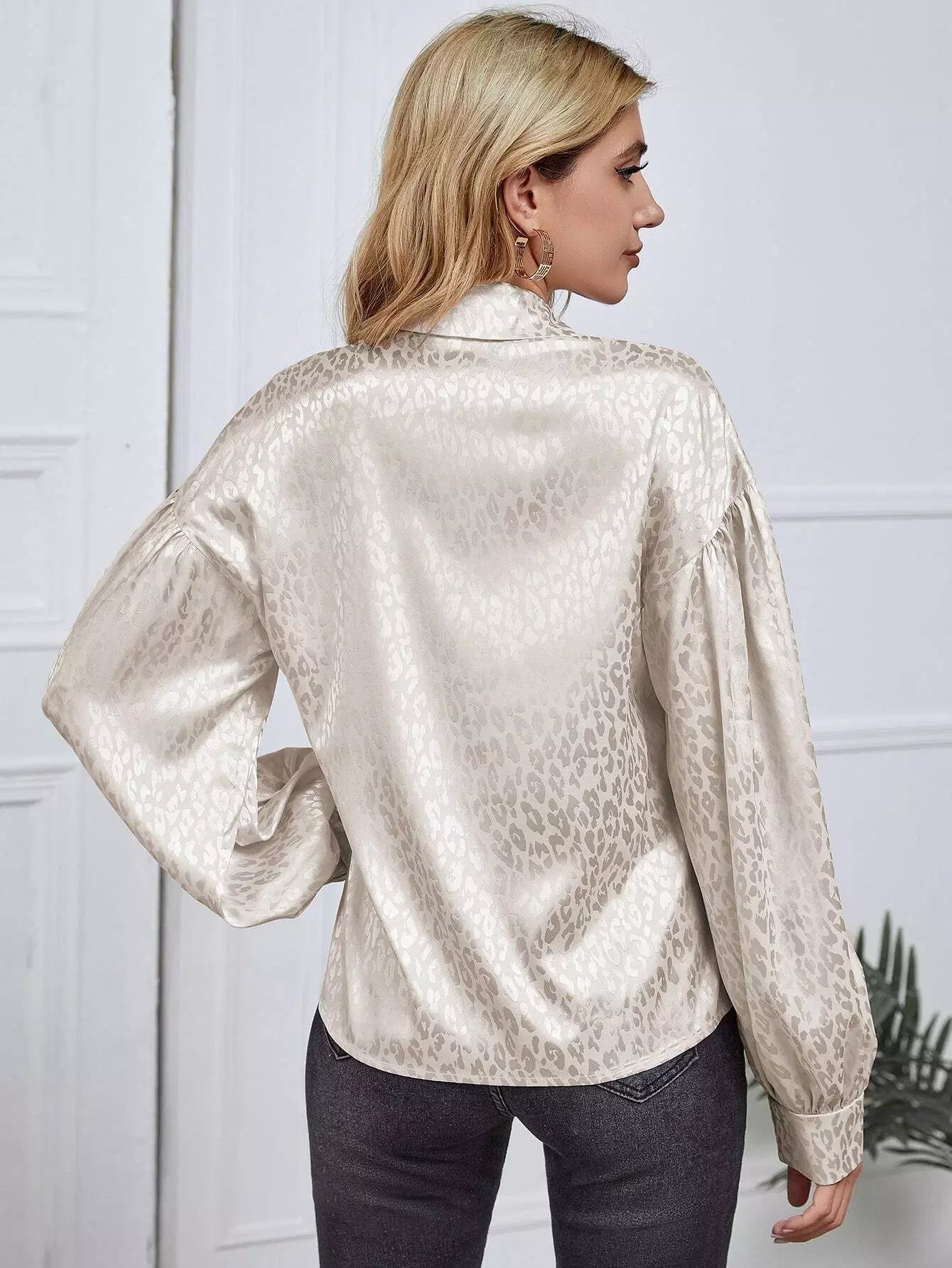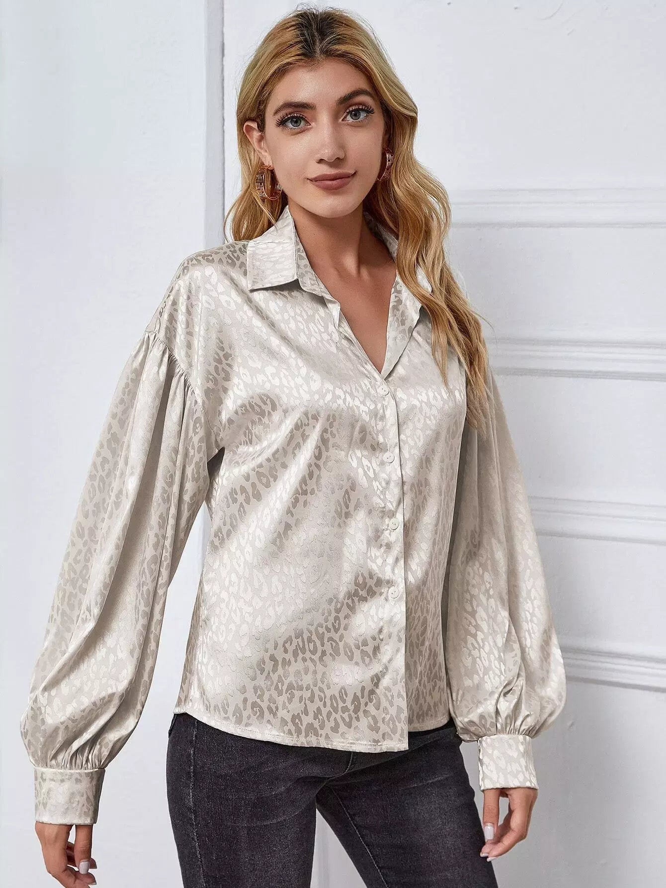 Women - Leopard Lantern Sleeve Shirt