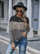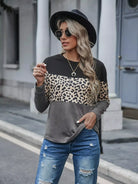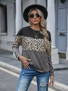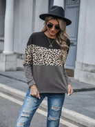 Leopard Print Color Block Drop Shoulder Tee