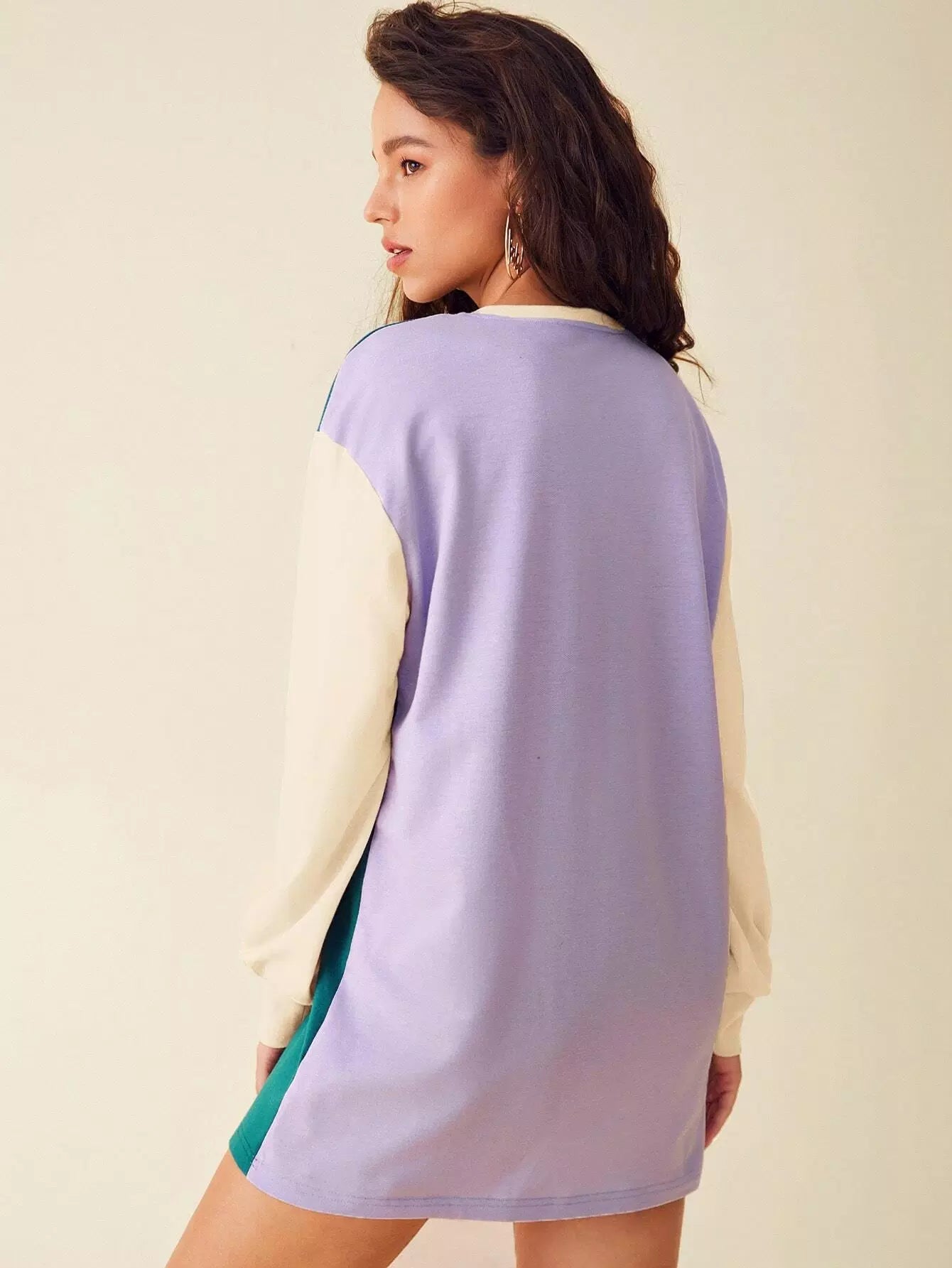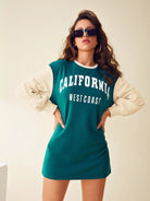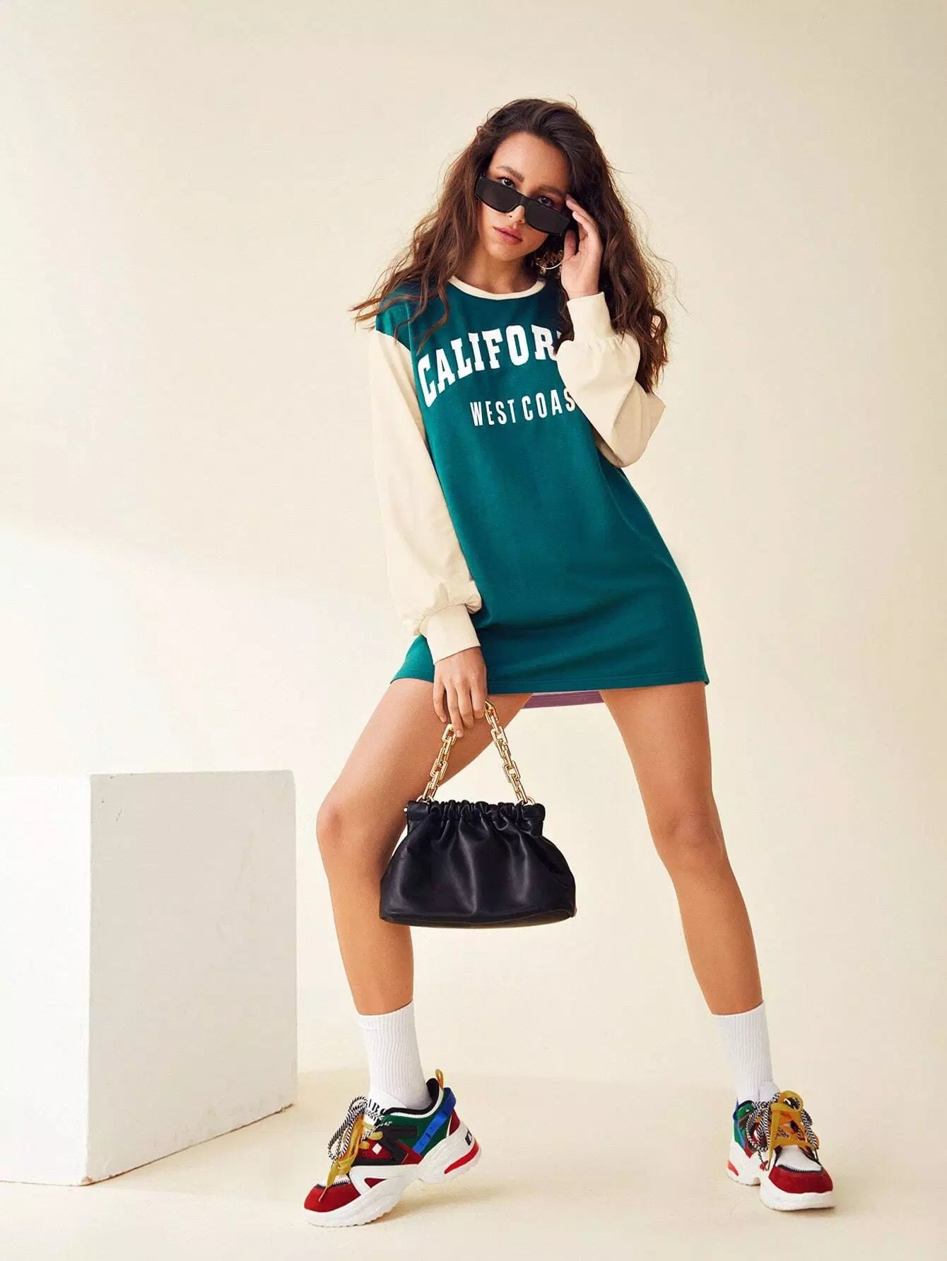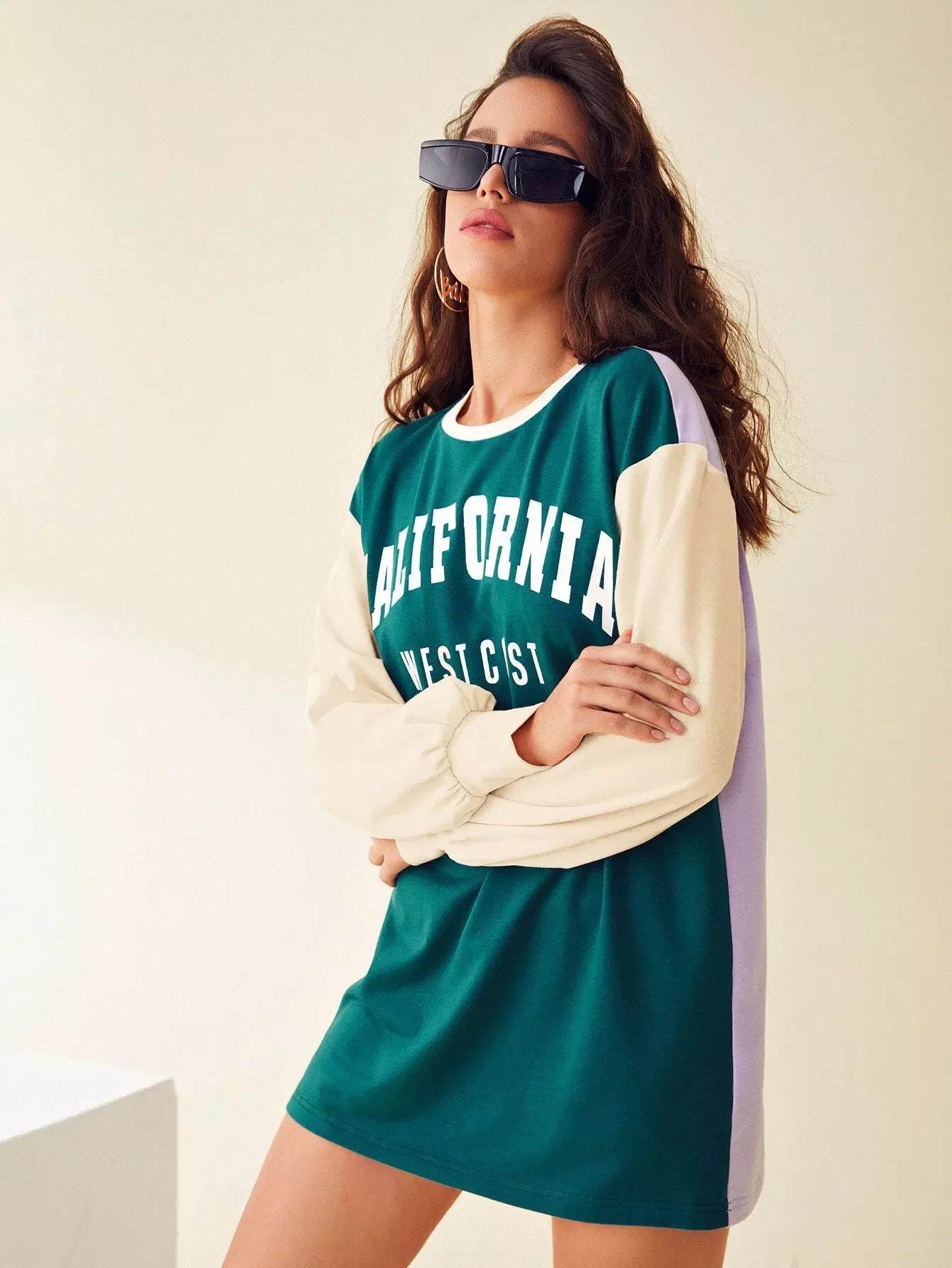Women - Letter Graphic Colorblock Sweatshirt Dress