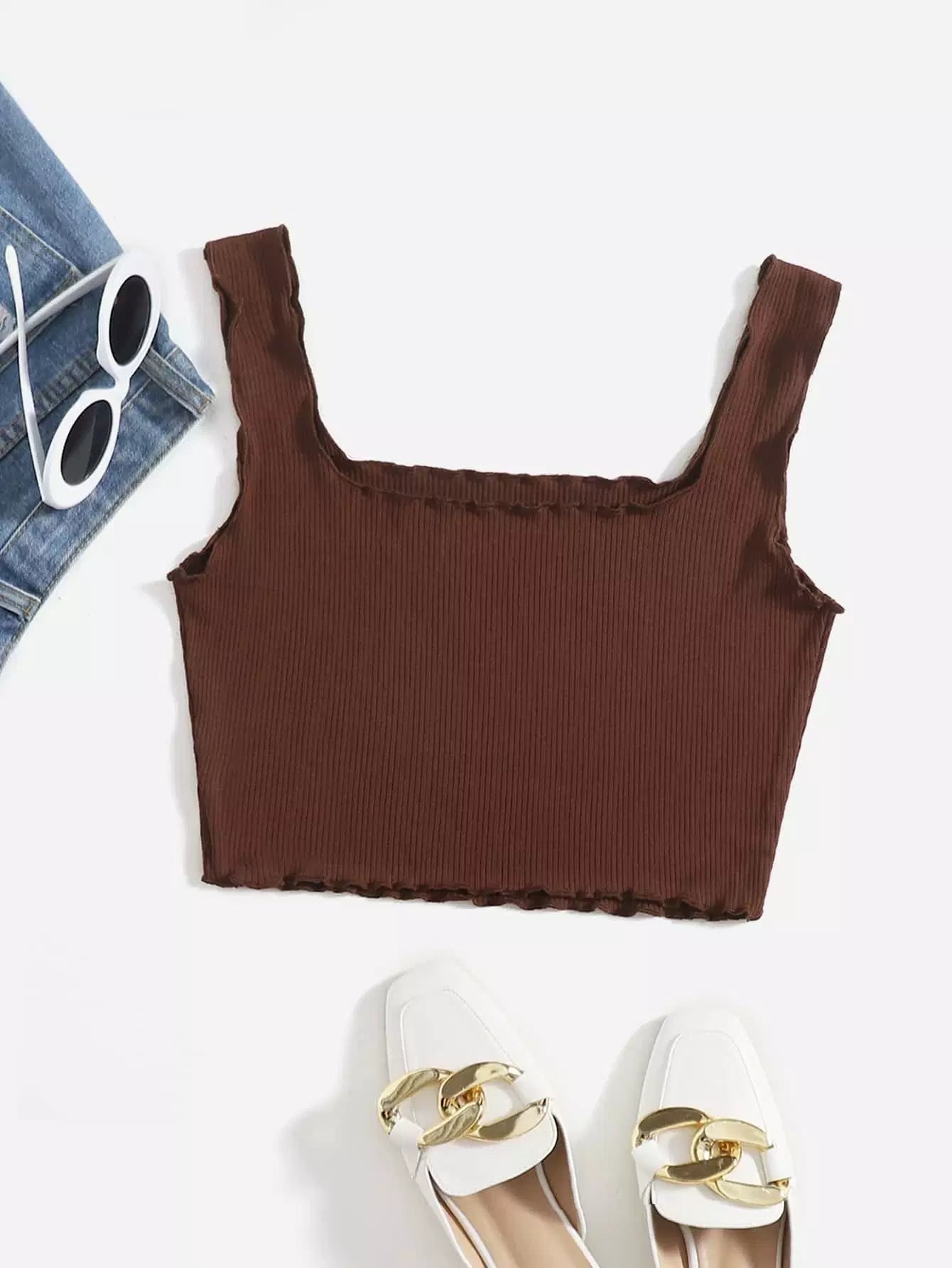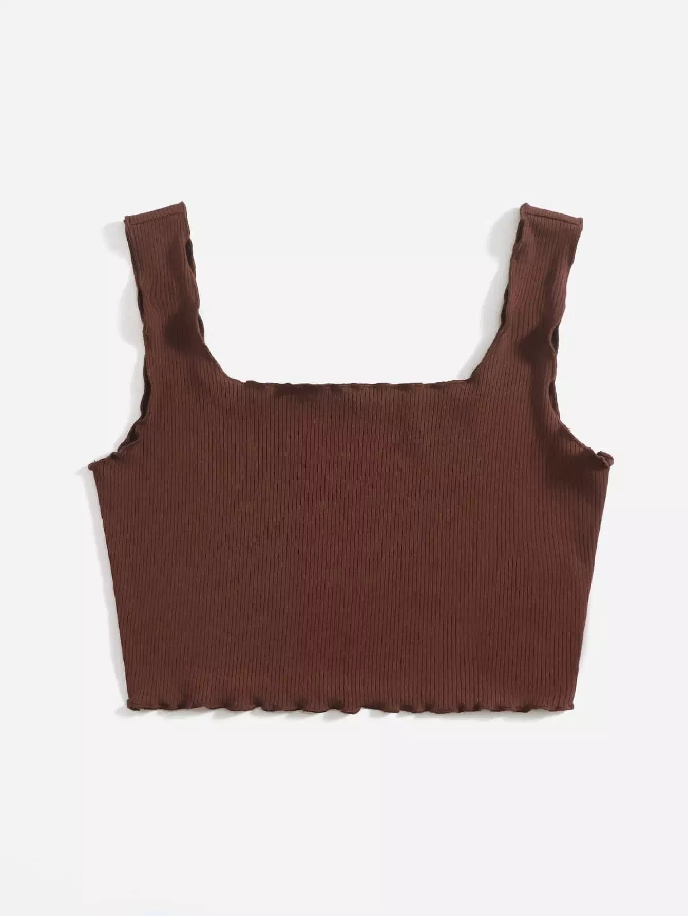 Lettuce Trim Rib-knit Crop Tank Top