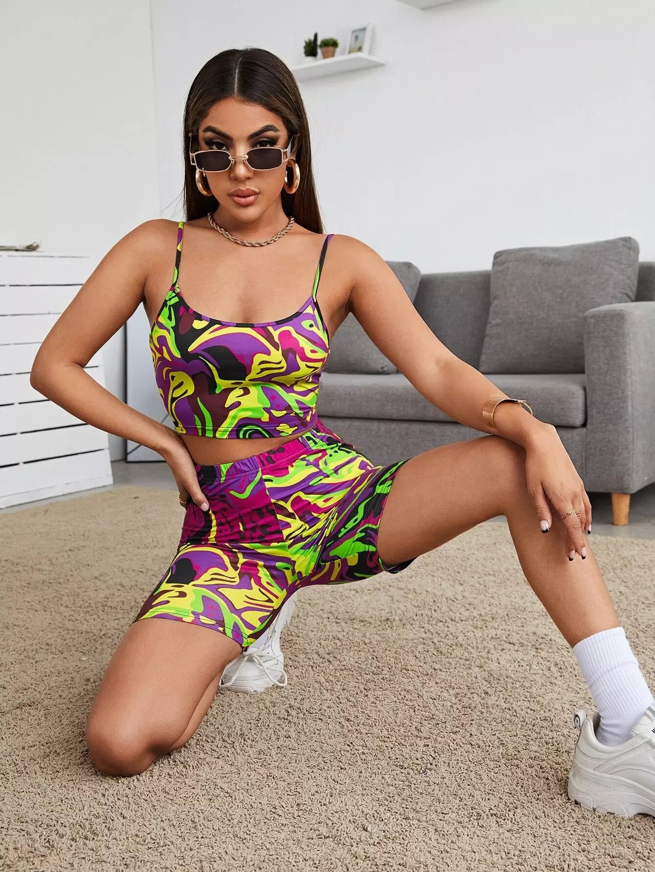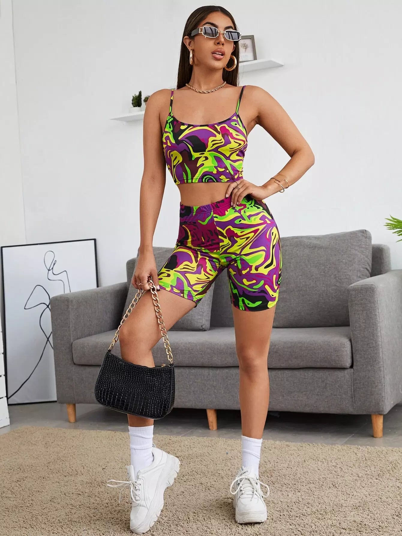 Marble Cami Top & Biker Shorts Set